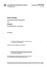 SCHLESWIG-HOLSTEINISCHER LANDTAG Drucksache 14/1170 14. Wahlperiode 17.12.97 Kleine Anfrage des Abgeordneten Uwe Eichelberg (CDU) und Antwort der Landesregierung - Innenminister- Kirchenasyl 1. Nach welchen rechtsstaatliehen Kriterien ist die Gewährung von ,,Kirchenasyl" für den Staat gerege~? Es gibt keine rechtliche Regelung von ,.Kirchenasyl". 2. Welche Räumlichkeiten werden seitens der Landesregierung als Schutzräume für ,.Kirchenasylanten" akzeptiert (Kirchen, Gebets· · räume, Gemeindearbeitsräume)? Die Landesregierung respektiert das Hausrecht der Kirche. Dazu gehö- ren alle Räumlichkeiten, die der Religionsausübung dienen. • Die Landtagsdrucksachen sind fortlaufend und einzeln beim Vertag Schmidl &Klaunig, Ringstraße 19. 24114 Kiel, Femruf 04 31/6 20 95, zu beziehen.