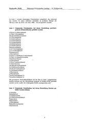 Drucksache 10/421 Schleswig-Holsteinischer Landtag -10. Wahlperiode In Liste 1 werden diejenigen Chemikalien aufgeführt, die während der letzten 10 Jahre weltweit entweder in größerer Menge als 500 kg/a oder im Wert von über 1000,- $/a hergestellt wurden. Liste 1: Organische Chemikalien, bei deren Herstellung polyhalo- genierte Dibenzodioxine gebildet werden 4-Brom-2,5-dichlorphenol 2-Chlor-4-fluorphenol Decabromphenoxybenzol 2,4-Dibromphenol 2,3-Dichlorphenol 2,4-Dichlorphenol 2,5-Didllorphenol 2,6-Dichlorphenol 3.4-Didllorphenol Pentabromphenol 2,4,6-Tribromphenol 2,4,5-Trichlorphenol Bromphenetol o-Bromphenol 2-Chlor -1 ,4-diethoxy -5-nitrobenzol 5-Chlor-2,4-dimethoxyanilin Chlorhydrochinon o-Chlorphenol 2-Chlor-4-phenylphenol 4-Chlorresorcin 2,6-Dibrom-4-nitrophenol 3,5-Dichlorsalicylsäure 2,6-Dijod-4-nitrophenol 3,5-Dijodsalicylsäure o-Fluoranisol o-Fluorphenol Tetrabrombisphenol A Tetrachlorbisphenol A Mit geringerer Wahrscheinlichkeit als bei den in Liste 1 aufgeführten Stoffen können bei der Herstellung weiterer 55 Stoffe PCDD gebildet werden (Liste 2 zählt die wichtigsten Stoffe auszugsweise auf). Liste 2·: OrganisdJ.e Chemikalien, bei deren Herstellung Dioxine ge- bildet werden können o-Anisidin Benzaldehyd 3,4-Dichloranilin 3,4-Dichlorbenzaldehyd Fumarsäure Maleinsäure o-Nitrophenol Phthalsäureanhydrid Chlorbenzole 4