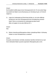 Schleswig-Holsteinischer Landtag - 17. Wahlperiode Drucksache 17/2439 Antwort: Die Schulpflicht entfällt aufgrund einer Schwangerschaft nicht. Für eine solche Rege- lung besteht kein Bedarf, da eine Beurlaubung vom Schulbesuch gem. § 15 SchulG möglich ist. 5.) Liegen der Landesregierung Erkenntnisse darüber vor, wie viele volljährige Schülerinnen nach einer Schwangerschaft einen Schulabschluss erworben haben? Wenn ja, wie bewertet die Landesregierung diese Quote? (Bitte mit Angaben für die Jahre 2006 bis 2011.) Antwort: Nein. 6.) Welche Unterstützung/Hilfsangebote erhalten minderjährige Mütter in Schleswig- Holstein um einen Schulabschluss zu erwerben? Antwort: Die jeweils unterrichtenden Lehrkräfte unterstützen betroffene Schülerinnen je nach ihrem individuellen Bedarf; pauschal organisierte Hilfsangebote gibt es nicht. 3