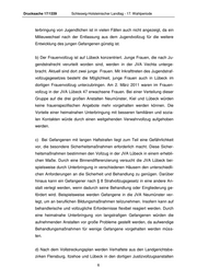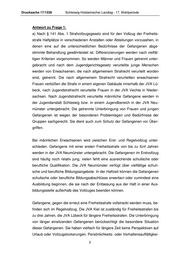 Drucksache 17/1339 Schleswig-Holsteinischer Landtag - 17. Wahlperiode terbringung von Jugendlichen ist in vielen Fällen auch nicht angezeigt, da ein Milieuwechsel nach der Entlassung aus dem Jugendvollzug für die weitere Entwicklung des jungen Gefangenen günstig ist. b) Der Frauenvollzug ist auf Lübeck konzentriert. Junge Frauen, die nach Ju- gendstrafrecht verurteilt worden sind, werden in der JVA Vechta unterge- bracht. Aktuell sind dort zwei junge Frauen. Mit Inkrafttreten des Jugendstraf- vollzugsgesetzes besteht die Möglichkeit, junge Frauen auch in Lübeck im dortigen Frauenvollzug unterzubringen. Am 2. März 2011 waren im Frauen- vollzug in der JVA Lübeck 47 erwachsene Frauen. Bei einer Verteilung dieser Gruppe auf die drei großen Anstalten Neumünster, Kiel und Lübeck würden keine frauenspezifischen Angebote mehr vorgehalten werden können. Die Vorteile einer heimatnahen Unterbringung mit besseren familiären und sozia- len Kontakten würde durch einen weitgehenden Verwahrvollzug aufgehoben werden. c) Bei Gefangenen mit langen Haftstrafen liegt zum Teil eine Gefährlichkeit vor, die besondere Sicherheitsmaßnahmen erforderlich macht. Diese Sicher- heitsmaßnahmen bestimmen den Vollzug in der JVA Lübeck in einem erhebli- chen Maße. Durch eine Binnendifferenzierung versucht die JVA Lübeck bei- spielsweise durch Unterbringung in verschiedenen Häusern den unterschiedli- chen Anforderungen an die Sicherheit und Behandlung zu genügen. Darüber hinaus kann ein Gefangener nach § 8 Strafvollzugsgesetz in eine andere An- stalt verlegt werden, wenn dadurch seine Behandlung oder Eingliederung ge- fördert wird. Beispielsweise werden Gefangene in die JVA Neumünster ver- legt, um an beruflichen Bildungsmaßnahmen teilzunehmen. Insofern kann auf behandlerische und vollzugliche Erfordernisse flexibel reagiert werden. Durch eine heimatnahe Unterbringung von langstrafigen Gefangenen würden die aufnehmenden Anstalten vor große Probleme gestellt werden, da aufwendige Behandlungsmaßnahmen für wenige Gefangene vorgehalten werden müss- ten. d) Nach dem Vollstreckungsplan werden Verhaftete aus den Landgerichtsbe- zirken Flensburg, Itzehoe und Lübeck in den dortigen Justizvollzugsanstalten 6