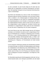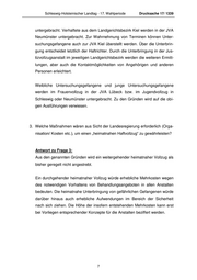 Schleswig-Holsteinischer Landtag - 17. Wahlperiode Drucksache 17/ 1339 Angebot zur Schuldner- und Drogenberatung gemacht, in den großen Anstal- ten können die Gefangenen darüber hinaus von den Möglichkeiten der Thera- piemaßnahmen für Gewalt- und Sexualstraftäter profitieren, ein Soziales Trai- ning absolvieren sowie an den diversen Sport- und Freizeitangeboten von Yo- ga über Gesprächskreise bis zu Musik- und Theatergruppen teilnehmen. Zu berücksichtigen ist ferner, dass Schleswig-Holstein ein relativ kleines Flä- chenland ist. Bei einer Schließung der JVA Flensburg würden die Gefangenen in die JVA Kiel oder die JVA Neumünster verlegt werden. Beide Anstalten sind verkehrsmäßig gut erreichbar. Auch die Fahrzeiten aus dem Landgerichtsbe- zirk Flensburg erscheinen noch als vertretbar. Da die Gefangenen nur relativ kurz einsitzen, hält sich der Aufwand in Grenzen. 2. Wie wäre auf Basis der Vorgabe „heimatnaher Haftvollzug“ die derzeitige Or- ganisation a. des Jugendstrafvollzuges, b. des Frauenvollzuges, c. des Strafvollzug bei längeren Haftstrafen und d. der Untersuchungshaft zu bewerten? Antwort zu Frage 2: a) Junge Gefangene des Jugendstrafvollzuges werden entweder in der Ju- gendanstalt Schleswig oder im Jugendbereich der JVA Neumünster unterge- bracht. Die Unterbringung erfolgt nicht nach dem Heimatprinzip, sondern da- nach, welche Defizite auszugleichen sind. In Neumünster können zahlreiche schulische und berufliche Qualifizierungsmaßnahmen absolviert werden, in Schleswig werden berufliche Orientierungsmaßnahmen angeboten, die insbe- sondere für jüngere Gefangene wichtig sind. In Schleswig besteht auch die Möglichkeit der Aufnahme in der neuen Sozialtherapie. Eine heimatnahe Un- 5