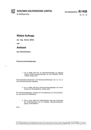 m SCHLESWIG-HOLSTEINISCHER LANDTAG 8. Wahlperiode Dt·ucksache 8/418 23. 07. 76 Kleine Anfrage des Abg. Schulz (SPD) und Antwort des Kultusministers Klassenzusammenlegungen 1. Ist es richtig, daß kurz vor Sommerferienbeginn in größerem Umfang Klassenzusammenlegungen für das Sdmljaiir 1976/77 verfügt worden sind? Klassenzusammenlegungen und Klassenneubildungen hat es vor je- dem Schuljahresbeginn gegeben. 2. Ist es richtig, daß diese Klassenzusammenlegungen auf Veran- lassung der Kreissdmlämter erfolgt sind? Die Zusammenlegungen erfolgen auf Veranlassung der Kreisschuläm- ter oder durd1 die Schulleiter. 3. Gibt es einen Erlaß des Kultusministers oder eine Anweisung des Landesschulamtes mit der Maßgabe, Klassenzusammenle- gungen durchzuführen? Nein. Die Landtagsdrucksachen sind fortlaufend und einzeln beim Verlag Schmrdt & Klaunlg, 23 Klei, Ringstraße 19/21, Fernruf 6 20 95/96, zu beziehen.