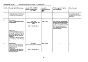 Drucksache 15/1148 Schleswig-Holsteinischer Landtag - 15. Wahlperiode Lfd. Nr. Modellprojekt/Zielsetzung* Ansatz 2001 / VE 2001 Laufzeit Förderung des Projekts Bemerkungen (davon Landesmittel: ) des Modellpro- nach Auslaufen - in TDM - jekts bis ................ 5 Modellprojekt: 2 Jahre Nicht vorgesehen Streetwork-Leasing zur Unter- Landesmittel: 16,7 Bewilligung vorgesehen stützung von Gemeinden bei Genaue Termine zu Problemen mit rechtsradikalen 0909 - 684 14 Beginn und Ende sind und gewaltbereiten Jugendli- noch nicht bekannt chen 6 Modellprojekt: 01.08.01-31.07.03 Nicht vorgesehen Psychsoziale Prophylaxe für Landesmittel: 39,4 Kinder psychisch kranker Eltern 0909 - 684 14 7 Modellprojekt: 15.07.01-15.07.03 Nicht vorgesehen Gender-Training in der Jugend- Landesmittel: 52,7 hilfe 0909 - 684 14 8 Modellprojekt: 01.10.01-30.09.02 Nicht vorgesehen Problembehandlung sexueller Landesmittel: ~19,0 Bewilligung vorgesehen Gewalt durch kindliche und ju- Aktueller Finanzie- gendliche Täter 0909 - 684 14 rungsplan liegt noch nicht vor. 9 Modellprojekt: 01.08.01-31.12.03 Nicht vorgesehen Jugendlotsen , um bestimmte Landesmittel: 60,6 Problemjugendliche besser zu erreichen 0909 - 684 14 Lfd. Nr. Modellprojekt/Zielsetzung* Ansatz 2001 / VE 2001 Laufzeit Förderung des Projekts Bemerkungen (davon Landesmittel: ) des Modellpro- nach Auslaufen jekts 30