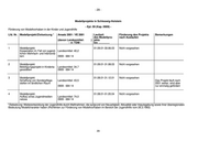 - 23 - Ansatz 2001 / VE 2001 Laufzeit Förderung des Projekts nach Lfd. Nr. Modellprojekt/Zielsetzung (davon Landesmittel: ) des Modellprojekts Auslaufen Bemerkungen - in TDM - bis ................ Modellprojekt: 50 TDM (Landesmittel) 9 Fortbildungsagentur im Touris- (Titel 080 892 61) bis Mitte 2002 geplant mus (FIT) Zielsetzung: § Ermittlung des Weiterbil- dungsbedarfes in der Tou- rismusbranche; § Weiterbildungsangebote sammeln und an die Ziel- gruppen im Tourismus (Be- herbergung und Gastrono- mie, sonstige Tourismusbe- triebe) weitergeben; § Weiterbildung als wichtige Funktion der Personalent- wicklung und Qualitätssi- cherung etablieren. 10 Modellprojekt: - „Qualitätstore“ – 500 TDM zurzeit nicht abseh- mit fünf Einzelprojekten: (100 % Landesmittel) bar, voraussichtlich 2 - co op, famila, Redlfesen, Ge- (Titel 0802 683 02) Jahre müseprojekt und Milchprojekt Zielsetzung: beispielhafte Umsetzung der Qualitätstore für die übrige Wirtschaft, Erhöhung des Verbraucherschutzes durch gläserne Produktion 11 Modellprojekt: 130 TDM Grundwasserschutz in Dith- (100 % Landesmittel) 31.12.2002 erwünscht marschen – ein Projekt zur (Titel 0802 685 39) umweltschonenden Landbe- 23