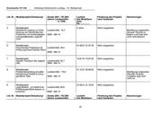 Drucksache 15/1148 Schleswig-Holsteinischer Landtag - 15. Wahlperiode Ansatz 2001 / VE 2001 Laufzeit Förderung des Projekts nach Lfd. Nr. Modellprojekt/Zielsetzung (davon Landesmittel: ) des Modellprojekts Auslaufen Bemerkungen - in TDM - bis ................ und Plön soll gemeinsam mit den verschiedenen Akteuren mit Hilfe eines „Kümmerers“ umgesetzt werden. 6 Modellprojekt: Zielgruppenorientierte Klassifi- 3,8 TDM 2001 Deckung des Fehlbedarfs zierung im Beherbergungsge- (Titel 0802 892 61) im Jahr 2000 werbe (ZOK) Zielsetzung: Anschub für die Durchfüh- rung/Begleitung der Zielgrup- penorientierten Klassifizierung durch den DEHOGA 7 Modellprojekt: 2 TDM (nur Land) Vergleich zweier Reitroutenbe- (Titel 0802 892 61) 2001 schilderungsmodelle in SH Zielsetzung: Vorbereitung der Entscheidung über eine landesweit einheitli- che Beschilderung von Reit- und Fahrrouten 8 Modellprojekt: Reitwegenetz des Kreises 120 TDM Dithmarschen Zielsetzung: (Titel 0802 685 09) Planung und Beschilderung des ersten kreisweiten Radwege- netzes in Schleswig-Holstein 22