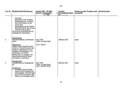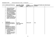 - 35 - Lfd. Nr. Modellprojekt/Zielsetzung Ansatz 2001 / VE 2001 Laufzeit Förderung des Projekts nach Bemerkungen (davon Landesmittel: ) des Modellprojekts Auslaufen - in TDM - bis ................ • zu Abstimmung über The- rapien mit Medikamenten und Heilmitteln. Aufbau eines Internets und Int- ranets zur Information von Ärz- ten und Patienten Modellprojekt: 6 Praxisnetz in Verzahnung zum 40,0 TDM 01.01. – 31.12.2001 keine regionalen Krankenhaus (100% Landesmittel) 1002 - 636 01 Zielsetzung: (s. unter 5) mit Weiterentwick- lung einer integrierten Verzah- nung von Informations- und Kommunikationstechnologien in Erweiterung mit Krankenhäu- sern. Modellprojekt: 7 Netzwerk soziale Dienstleister 103,0 TDM 2000 bis 2001 keine (100% Landesmittel) 1005 - 685 01 Zielsetzung: • Entwicklung und Erprobung eines Angebots der Selbst- darstellung im Internet für die beteiligten sozialen Dienstleister; • Entwicklung und Erprobung einer intenet-spezifischen virtuellen Ebene für den so- 35