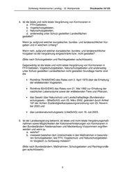 Schleswig- Holsteinischer Landtag - 16. Wahlperiode Drucksache 16/120 4. Ist die letale und nicht-letale Vergrämung von Kormoranen in a. FFH-Gebieten, b. Vogelschutzgebieten, c. Naturschutzgebieten, d. anderweitig unter Schutz gestellten Landesflächen gestattet? Wenn ja, aufgrund welcher europäischer, bundes- und landesrechtlicher Vor- gaben und in welchem Unfang? Wenn nein, aufgrund welcher europäischer, bundes- und landesrechtlicher Vorgaben ist die Vergrämung eingeschränkt bzw. nicht gestattet? (Bitte nach Schutzgebieten und Rechtsgebieten aufschlüsseln). Gegenwärtig ist die letale und nicht-letale Vergrämung von Kormoranen in FFH-Gebieten, Vogelschutzgebieten, Naturschutzgebieten und anderweitig unter Schutz gestellten Landesflächen nicht gestattet. Grundlage hierfür sind die • Richtlinie 79/409/EWG des Rates vom 2. April 1979 über die Erhaltung der wildlebenden Vogelarten, • Richtlinie 92/43/EWG des Rates vom 21. Mai 1992 zur Erhaltung der natürlichen Lebensräume sowie der wildlebenden Tiere und Pflanzen, • das Gesetz über Naturschutz und Landschaftspflege (Bundesnatur- schutzgesetz – BNatSchG) vom 25. März 2002, geändert durch Artikel 167 der Achten Zuständigkeitsanpassungverordnung vom 25. Novem- ber 2003 und • das Landesnaturschutzgesetz (LNatSchG) vom 18. Juli 2003. 5. Ist der Landesregierung bekannt, ob letale und nicht-letale Vergrämungsmaß- nahmen sowie Möglichkeiten der Kolonieverhinderungen von Kormoranen in den Bundesländern Niedersachsen und Mecklenburg-Vorpommern ergriffen werden und wenn ja, a. welche? b. inwieweit bestehen dort Unterschiede in den Maßnahmen in besonde- ren Schutzgebieten, wie FFH, Vogelschutz- und Naturschutzgebieten im Vergleich zu Schleswig-Holstein? (Bitte nach Bundesländern, Maßnahmen, Schutzgebieten und Rechtsgrundla- gen aufschlüsseln). 5