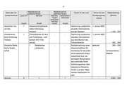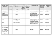 Mitgliedschaft in dienstlicher Eigenschaft in Vereinen und Verbänden in 2000 Anlage 4 Ressort: Innenministerium Mitgliedschaft als Mitgliedschaft als Name des Ver- Nutzen für das Land Termin für eine Mitgliedsbeitrag juristische Person natürliche Person bandes/Vereines Land S-H Behörde Kabinetts- Mitarbeiterin/ Kündigungsmög- (jährlich) mitglied Mitarbeiter lichkeit (einschließ- lich St‘s) Anzahl Anzahl Anzahl Anzahl 1 2 3 4 5 6 7 8 Siemens-Anwen- - - - 1 Frühzeitige und bessere 31.12. für das 700,-- DM der-Verein Information zu Produk- nächste Kalen- (SAVE) ten, Trends usw. derjahr Deutsche Sekti- - - Gewinn vertiefender jederzeit 800,-- DM on des Internati- Kenntnisse über in- und ohne gesetzliche onalen Instituts ausländische Verwa l- Verpflichtung als für Verwal- tungswissenschaften eigenbestimmte tungswissen- und -praxis; Nutzbarma- Zuwendung schaften chung für die Praxis. Volksbund Deut- 1 - - - Der Verband stellt dem jederzeit 2.000,-- DM scher Kriegsgrä- Land als kompetenter berfürsorge e. V. Ansprechpartner kos- tenlose Beratung und Unterstützung in Ange- legenheiten des Gräber- gesetzes zur Verfügung