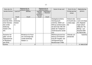 Mitgliedschaft in dienstlicher Eigenschaft in Vereinen und Verbänden in 2000 Anlage 7 Ressort: Ministerium für Wirtschaft, Technologie und Verkehr Mitgliedschaft als Mitgliedschaft als Name des Ver- Nutzen für das Land Termin für eine Mitgliedsbeitrag juristische Person natürliche Person bandes/Vereines Land S-H Behörde Kabinetts- Mitarbeiterin/ Kündigungsmög- (jährlich) mitglied Mitarbeiter lichkeit (einschließ- lich St‘s) Anzahl Anzahl Anzahl Anzahl 1 2 3 4 5 6 7 8 Forschungsgesell- 1 Kontinuierliche Unterrichtung 30.09.2001 1.650 DM schaft für das Stra- über den neuesten Stand der ßen- und Verkehrs- Vorschriften und Richtlinien; wesen e. V. FG übersendet laufend neu erschienene Druckstücke Verein zur Förde- 1 Förderung des Ausbaus der zum 30.09.2001 600 DM rung des Elbe- Wasserstraßen und Häfen im mit Wirkung ab stromgebietes e. V. Stromgebiet der Elbe einschl. 1.1.2002 aller schiffbaren Nebenflüsse und Kanäle ESPO – European 1 Interessenvertretung der s.-h. 31.12.2001 8.000 DM Sea Port Organisa- Häfen in Brüssel tion BBS - Berufsbil- 1 Mitwirkung des Landes an der zum 31.12.2000 23.800 DM dungsstelle See- Regelung der beruflichen mit Wirkung ab schifffahrt e. V. Bildung in der Seeschifffahrt, 1.1.2002 Überwachung der Durchfüh-