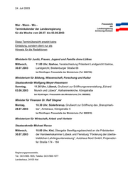 -4- bei Rückfragen: Pressestelle des Ministeriums (Tel: 9885316) Regierungspressestelle, Tel.: 0431/988-1805, Telefax: 0431/988-1977 Landeshaus, 24105 Kiel