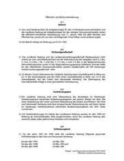 Öffentlich-rechtliche Vereinbarung 81 Beitritt (1) Das Land Niedersachsen als Aufgabenträger für den Schienenpersonennahverkehr und der Landkreis Harburg als Aufgabenträger für den übrigen Personennahverkehr treten der öffentlich-rechtlichen Vereinbarung vom 11. Januar 1996 mit allen Rechten und Pflichten bei, soweit sich aus den nachfolgenden Vorschriften nichts anderes ergibt. (2) Der Beitritt erfolgt mit Wirkung zum 01.01.1997. 52 Verbundgesellschaft (1) Der Landkreis Harburg und die Landesnahverkehrsgesellschaft Niedersachsen mbH (LNVG) als vom Land Niedersachsen mit der Wahrnehmung der Aufgaben nach $ 2 Abs. 2 i.V.m. 8 4 Abs. 1 Nr. 1 und Abs. 5, 8 5 Abs. 2 und S 6 Abs. 6 des Niedersächsischen Nahverkehrsgesetzes sowie 8 4 des Regionalisierungsgesetzes beliehene Zentrale Stelle für den öffentlichen Personennahverkehr werden Gesellschafter der HW Hamburger Verkehrsverbundgesellschaft mbH. (2) Zu diesem Zweck übernimmt der Landkreis Harburg einen Geschäftsanteil in Höhe von 0,5 % des Stammkapitals und die LNVG einen Geschäftsanteil in Höhe von 1,0 % des Stammkapitals von der Freien und Hansestadt Hamburg. Die Übertragung der Geschäftsanteile erfolgt in einer gesonderten Vereinbarung. $3 Verkehrsangebot (1)Der Landkreis Harburg wird eine Überprüfung des derzeitigen im Hamburger Verkehrsverbund erbrachten Busleistungsangebots auf seinem Gebiet mit dem Ziel einer Optimierung der Linien und einer Reduzierung der Kosten durchfuhren. Die Freie und Hansestadt Hamburg wird eine entsprechende Überprüfung des auf ihrem Gebiet im Hamburger Verkehrsverbund erbrachten Busleistungsangebots der KVG Stade vornehmen. (2) Die Verkehrsleistungen im Gebiet des Landkreises Harburg werden im Jahr 1999 mit Wirkung ab Sommerfahrplan 2000 ausgeschrieben, wenn der Landkreis Harburg dies wünscht; dabei sollen gebrochene Verkehre nicht entstehen. $4 Defizitausgleich (1) Für die Jahre 1997 bis 1999 zahlt der Landkreis Harburg folgende pauschale Defizitbeiträge an die Freie und Hansestadt Hamburg: für das Jahr 1997: 2,0 Mio. DM, für das Jahr 1998: 2,0 Mio. DM und für das Jahr 1999: 2,4 Mio. DM. Anlage 1 zum Kooperationsvertrag der HVV GmbH Öffentlich-rechtliche Vereinbarung