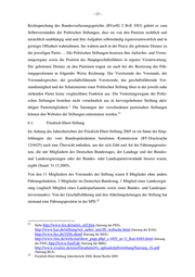 - 13 - Rechtsprechung des Bundesverfassungsgerichts (BVerfG 2 BvE 5/83) gehört es zum Selbstverständnis der Politischen Stiftungen, dass sie von den Parteien rechtlich und tatsächlich unabhängig sind und ihre Aufgaben selbstständig eigenverantwortlich und in geistiger Offenheit wahrnehmen. Sie wahren auch in der Praxis die gebotene Distanz zu der jeweiligen Partei…. Die Politischen Stiftungen besetzen ihre Aufsichts- und Vertre- tungsorgane sowie die Position des Hauptgeschäftsführers in eigener Verantwortung. Der gebotenen Distanz zu den Parteinen tragen sie auch bei der Besetzung der Füh- rungspositionen in folgender Weise Rechnung: Der Vorsitzende des Vorstands, der Vorstandssprecher, der geschäftsführende Vorsitzende, das geschäftsführende Vor- standsmitglied und der Schatzmeister einer Politischen Stiftung üben in der jeweils nahe stehenden Partei keine vergleichbare Funktion aus. Die Vertretungsorgane der Politi- schen Stiftungen bestehen nicht vornehmlich aus in hervorgehobener Stellung aktiv tätigen Parteimitgliedern.“ Die Satzungen der verschiedenen parteinahen Stiftungen 31 können den Websites der Stiftungen entnommen werden. 6.1. Friedrich-Ebert-Stiftung Im Anhang des Jahresberichtes der Friedrich-Ebert-Stiftung 2005 ist im Sinne der Emp- fehlungen der vom Bundespräsidenten berufenen Kommission (BT-Drucksache 12/4425) auch eine Übersicht enthalten, aus der sich Zahl und Art der Führungspositio- nen, die mit Mitgliedern des Deutschen Bundestages, der Landtage und der Bundes- und Landesregierungen oder der Bundes- oder Landesparteivorstände besetzt waren, ergibt (Stand: 31.12.2005). Von den 11 Mitgliedern des Vorstandes der Stiftung waren 8 Mitglieder ohne andere Führungsfunktion, 2 Mitglieder im Deutschen Bundestag, 1 Mitglied einer Landesregie- rung (zugleich Mitglied eines Landesparlaments sowie eines Bundes- und Landespar- teivorstandes). Von der Geschäftsführung und den Abteilungsleitungen der Stiftung hat 32 niemand eine Führungsposition in der SPD. 31 Siehe http://www.fes.de/sets/s_stif.htm (Satzung der FES); http://www.kas.de/stiftung/wir_ueber_uns/20_webseite.html (Satzung der KAS); http://www.hss.de/1656.shtml (Satzung der HSS); http://www.fnst.de/webcom/show_page.php/_c-445/_nr-1/_lkm-648/i.html (Satzung der FNS); http://www.boell.de (Satzung der HBS); http://www.rosalux.de/cms/fileadmin/rls_uploads/pdfs/stiftung/Satzung_rls.pdf (Satzung RLS). 32 Friedrich-Ebert Stiftung Jahresbericht 2004, Bonn/ Berlin 2005.