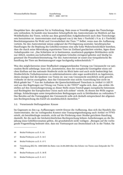 Wissenschaftliche Dienste Ausarbeitung Seite 13 WD 7 - 3000 - 037/19 Es erscheint zweifelhaft, ob diese Auffassungen den hohen Anforderungen, die im Strafrecht an den auch für den Gehilfen erforderlichen Tatnachweis gerichtet werden, hinreichend Rechnung tragen. Wie oben dargelegt, handelt es sich bei § 17 Nr. 2 lit. b TierSchG um einen normativ ge- 57 prägten, unbestimmten Tatbestand, der eng auszulegen ist. Insbesondere die Tatbestandsmerk- male der „Erheblichkeit“ des Schmerzes und dessen „länger anhaltender“ Dauer sind unscharf 58 und bedürfen, wie gezeigt, der jeweiligen Konkretisierung im Einzelfall. Im juristischen Schrift- tum besteht auch kein Konsens dahingehend, dass Schächtungen per se den Tatbestand des § 17 Nr. 2 lit. b TierSchG erfüllten. Ganz im Gegenteil wird hierzu festgestellt: „Demgegenüber wird Tieren bei einem lege artis durchgeführten betäubungslosen Schlachten (Schächten) nach überwiegender Meinung nur ein kurzer erheblicher Schmerz iSd § 18 Nr. 1 59 zugefügt.“ Dies wird gerade auch vor dem Hintergrund der grundsätzlichen Untersagung betäubungslosen Schlachtens von warmblütigen Tieren durch das Tierschutzgesetz betont: „Der Sinn der gesetzgeberischen Konzeption liegt vor dem Hintergrund der tatsächlichen Schlachtmethoden auf der Hand. Daraus darf aber nicht geschlossen werden, dass jeder ein- zelne Schächtvorgang eine objektiv tierschutzwidrige Handlung sei; eine solche Beurteilung setzt voraus, dass die entsprechenden Tatbestände des Tierschutzgesetzes verwirklicht wor- den sind, vor allem, dass dem geschächteten Tier Schmerzen oder Leiden zugefügt worden 60 sind.“ Wenn aber das Schächten von Tieren nicht per se notwendigerweise den Tatbestand des § 17 Nr. 2 lit. b TierSchG erfüllt, vermag auch die Vorstellung bei einem potentiellen Gehilfen, dass es zu einer Schächtung kommt, als solche bereits keinen Gehilfenvorsatz zu generieren. Soweit schließlich auf mit der konkreten Durchführung des Schächtens in bestimmten Kulturkreisen den Autoren zufolge regelmäßig verbundene Praktiken – wie etwa das Zusammenbinden der Füße etc. – abgestellt wird, würde ein einschlägiger Gehilfenvorsatz voraussetzen, dass gerade die fraglichen Praktiken – sollten sie sich denn als § 17 lit. b. TierSchG unterfallend erweisen – auch in der Vorstellung des Gehilfen vorhanden und von dessen Vorsatz gedeckt sein müssten. Insofern aber erscheinen Hinweise auf bestimmte Schlachtpraktiken in ganzen Regionen, Län- dern oder gar Kulturkreisen, die auf einzelnen journalistischen Recherchen beruhen, zum einen zu pauschal und zum anderen nicht als hinreichender empirischer Beleg, um generell einen Ge- hilfenvorsatz im Einzelfall ableiten zu können. Vielmehr müsste im jeweiligen konkreten Einzel- fall aufgrund besonderer Erkenntnisse belegt werden, dass gerade bei dem in Frage stehenden Tiertransport zu dem konkreten Ziel – insbesondere etwa auch einem adressierten Betrieb etc. – 57 S. o. Gliederungspunkt 2.1. 58 S. o. Gliederungspunkt 2.1. 59 Pfohl, in: Münchener Kommentar zum StGB, 3. Auflage 2017, § 17 TierSchG, Rn. 4. 60 Metzger, in: Erbs/Kohlhaas, Strafrechtliche Nebengesetze, Werkstand: 222. EL Dezember 2018, § 4a TierSchG, Rn. 7.