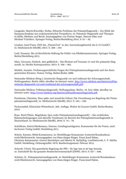 Wissenschaftliche Dienste Ausarbeitung Seite 29 WD 9 - 3000 - 037/17 Langanke, Martin/Kirschke, Stefan, Ethische Probleme der Pränataldiagnostik – Zur Ethik der Inanspruchnahme aus eudaimonistischer Perspektive, in: Pränatale Diagnostik und Therapie in Ethik, Medizin und Recht, herausgegeben von Florian Steger, Simone Ehm und Michael Tchirikov, Springer-Verlag, Berlin/Heidelberg 2014, S. 67 – 92. Lindner, Josef Franz, Fällt der „PraenaTest“ in den Anwendungsbereich des § 15 GenDG?, in: Medizinrecht (MedR), 2013, S. 288 – 291. Listl, Susanne, Die zivilrechtliche Haftung für Fehler von Ethikkommissionen, Springer-Verlag, Berlin/Heidelberg 2012. Maio, Giovanni, Einfach, aber gefährlich – Der Bluttest auf Trisomie 21 und die pränatale Diag- nostik, in: Herder Korrespondenz, 2013, S. 358 – 362. Middel, Annette, Verfassungsrechtliche Fragen der Präimplantationsdiagnostik und des thera- peutischen Klonens, Nomos Verlag, Baden-Baden 2006. Nationaler Ethikrat (Hrsg.), Genetische Diagnostik vor und während der Schwangerschaft, Stellungnahme, Berlin 2003; abrufbar im Internet unter: http://www.ethikrat.org/dateien/pdf/ge- netische-diagnostik-vor-und-waehrend-der-schwangerschaft.pdf. Nationaler Ethikrat, Polkörperdiagnostik, Stellungnahme, Berlin, 16. Juni 2004; abrufbar im Internet unter: http://www.ethikrat.org/dateien/pdf/polkoerperdiagnostik.pdf. Pestalozza, Christian, Eine späte und missliche Geburt: Die Verordnung zur Regelung der Präim- plantationsdiagnostik, in: Medizinrecht (MedR), 2013, S. 343 – 350. Pschyrembel, Klinisches Wörterbuch, 266. Auflage, Walter de Gruyter GmbH, Berlin/Bosten, 2014. Ruso, Berit/Thöni, Magdalena, Quo vadis Präimplantationsdiagnostik? – Die rechtlichen Rahmenbedingungen und aktuelle Tendenzen im Bereich der Präimplantationsdiagnostik in Deutschland, in: Medizinrecht (MedR), 2010, S. 74 – 78. Schillhorn, Kerrin/Heidemann, Simone, Gendiagnostikgesetz, Kommentar für die Praxis, med- hochzwei Verlag GmbH, Heidelberg 2011. Scholz, Karsten, Ethik-Kommission, in: Heidelberger Kommentar Arztrecht/Krankenhaus- recht/Medizinrecht, herausgegeben von Hans-Jürgen Rieger, Franz-Josef Dahm, Christian Katzenmeier, Gernot Steinhilper und Martin H. Stellpflug, Loseblattwerk, C. F. Müller GmbH, Heidelberg, Ordnungsziffer 1670, Bearbeitungsstand: Februar 2012. Schroth, Ulrich, Die gesetzliche Regelung der PID – De lege lata et de lege ferenda, in: Zeitschrift für die gesamte Strafrechtswissenschaft (ZStW), 2013, S. 627 – 646. Schütze, H., Präimplantationsdiagnostik, in: Heidelberger Kommentar Arztrecht/Krankenhaus- recht/Medizinrecht, herausgegeben von Hans-Jürgen Rieger, Franz-Josef Dahm,