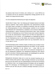 STAATSMINISTERIUM Freistaat DER JUSTIZ w SACHSEN Die erbetenen Daten können für Verfahren, die im Zeitraum vom 1. Januar 2009 bis zum 10. Dezember 2019 bei den sächsischen Sozialgerichten anhängig geworden sind, der Tabelle in der Anlage entnommen werden. Von einer weitergehenden Beantwortung der Fragen wird abgesehen. Gemäß Artikel 51 Absatz 1 Satz 1 der Verfassung des Freistaates Sachsen ist die Staats- regierung verpflichtet, Fragen einzelner Abgeordneter oder parlamentarische Anfragen nach bestem Wissen unvezüglich und vollständig zu beantworten. Nach dem Grundsatz der Verfassungsorgantreue ist jedes Verfassungsorgan verpflichtet, bei der Ausübung seiner Befugnisse den Funktionsbereich zu respektieren, den die hierdurch mitbetroffenen Verfassungsorgane in eigener Verantwortung wahrzunehmen haben. Dieser Grundsatz gilt zwischen der Staatsregierung und dem Parlament sowie seinen einzelnen Abgeordne- ten, so dass das parlamentarische Fragerecht durch die Pflicht des Abgeordneten zur Rücksichtnahme auf die Funktions- und Arbeitsfähigkeit der Staatsregierung begrenzt wird. Die Staatsregierung muss nur das mitteilen, was innerhalb der Antwortfrist mit zu- mutbarem Aufwand in Erfahrung gebracht werden kann (vgl. SächsVerfGH, Urteil vom 16. April 1998, Vf. 14-l-97). Unter Berücksichtigung dieser rechtlichen Vorgabe und Wahrung des zumutbaren Venryal- tungsaufwandes ist eine weitergehende Beantwortung nicht leistbar. Um dem Auskunfts- begehren des Fragestellers für den Zeitraum vom 1. Januar 2009 bis zum 10. Dezember2019 zu genügen, wurden allein bei den sächsischen Sozialgerichten be- reits 99 Arbeitsstunden aufgewandt. Eine weitergehende Beantwortung wäre aufgrund des damit verbundenen Aufirvands geeignet gewesen, die Arbeitsfähigkeit der Justiz maß- geblich und über einen längeren Zeitraum zu beeinträchtigen. Weitergehende lnformationen ließen sich nur durch die manuelle Auswertung der be- troffenen einzelnen Akten gewinnen. Klagen ehemaliger Heimkindern auf eine Entschädi- gung nach dem OEG werden nach der bundeseinheitlichen Anordnung über die Erhebung von statistischen Daten in der Sozialgerichtsbarkeit (SG-Statistik) unter der Sachgebiets- gruppe 100 ,,Versorgungs- und Entschädigungsrecht" erfasst. Ein Einzelsachgebiet für Verfahren nach dem OEG oder gar für Verfahren ehemaliger Heimkindern auf eine Ent- Seite 3 von 5