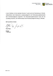 srAArsMrNrsrERru*r I # HxöTrsrrtr ln dem Verfahren mit der laufenden Nummer 2 wurde nach der Entscheidung im Rechts- mittelverfahren beim Sächsischen Landessozialgericht noch Nichtzulassungsbeschwerde beim Bundessozialgericht eingereicht. Die Nichtzulassungsbeschwerde wurde dort als unzulässig verworfen. Die Verfahrensdauer beim Bundessozialgericht betrug 2,3 Monate. Mit freundlichen Grüßen Katja Meier ,' 5 Anlage 1 Übersicht Seite 5 von 5
