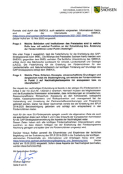 STAATSIVIINISTERIUM Freistaat FÜR ENERGIE, KLI]VIASCHUTZ, SACHSEN UIVIWELT UND TANDWIRTSCHAFT Frage 2= Welche sächsischen Förderrichtlinien im Landwirtschaftsbereich werden derzeit und/oder in absehbarer Zukunft und mit welchem Zeitplan angepasst und welcher Bearbeitungsstand soll wann erreicht sein? (Bitte einfache Übersicht) Anders als in der gegenwärtigen Förderperiode wird es in der nächsten Förderperiode für Deutschland einen gemeinsamen Strategieplan für die Gemeinsame Agrarpolitik (GAP) geben, der die Belange der ersten Säule (Direktzahlungen und Gemeinsame Marktorganisationen) und der zweiten Säule (Förderung der Entwicklung des ländlichen Raumes) beinhaltet. Federführend für die Erstellung des GAP- Strategieplanes ist das Bundesministerium für Ernährung und Landwirtschaft (BMEL). Die Bundesländer sind in die Erarbeitungsprozesse des GAP-Strategieplanes fortlaufend eingebunden. Nach derzeitigem Stand wird in Deutschland davon ausgegangen, dass die nächste EU-Förderperiode erst im Jahr 2023 beginnt. Es ist seitens des BMEL vorgesehen, den GAP-Strategieplan Anfang 2022 bei der Europäischen Kommission zur Genehmigung einzureichen, so dass eine Genehmigung möglichst bis Ende 2022 vorliegt und im Jahr 2023 eine Förderung nach dem GAP- Strategieplan möglich ist. Dann ist auch eine Neufassung aller unter Frage 1 genannten Richtlinien erforderlich. lnsofern wird an dieser Stelle auf eine nochmalige Aufzählung verzichtet. Frage 3: Welche Wege (Projekte, Maßnahmen ...) werden Bürger*innen und Betroffenen durch die Staatsregierung angeboten, um sich bei der Ausgestaltung der Förderrichtlinien oder der grundsätzlichen Förderbedingungen einzubringen, insbesondere im Bereich der Landwirtschaft und des Naturschutzes? Die Einbindung der betroffenen Wirtschafts- und Sozialpartner bei der Erarbeitung des GAP-Strategieplanes erfolgt auf Bundesebene durch das federführende BMEL. Hierzu fanden im Januar 2019 und im Oktober 2019 bereits Workshops mit den Wirtschafts-, Sozial- und Umweltpartnern statt. Eine weitere Veranstaltung ist für Mai 2020 als online- Konferenz vorgesehen. lnformationen sind auch unter https://www.bmel.de/DE/themen/landwirtschafUeu-aqrarpolitik-und-foerderunq/oap/qap- strateqieplan.html. (letzter Aufruf am 15.Mai 2020) eingestellt. lm Rahmen der erforderlichen Strategischen Umweltprüfung (SUP) ist für den dabei zu erstellenden Umweltbericht, gegen Ende des Erarbeitungsprozesses des GAP- Strategieplanes, eine Öffentlichkeitsbeteiligung vorgesehen. Mit Hilfe des Umweltberichtes sollen die voraussichtlichen Umweltauswirkungen des GAP- Strategieplans und der Alternativen sowie die Art, wie die Prüfung durchgeführt wurde, für die fachlich berührten Behörden und die Öffentlichkeit dargestellt werden. Der Umweltbericht zur SUP und der GAP-Strategieplan-Entwurf ist der Öffentlichkeit für mindestens vier Wochen zugänglich zu machen. Dem schließen sich vier Wochen mit der Möglichkeit zur Einreichung von Stellungnahmen an. Die Beteiligung in Vorbereitung der nächsten Förderperiode im Freistaat Sachsen durch das Sächsische Staatsministerium für Energie, Klimaschutz, Umwelt und ' Landwirtschaft (SMEKUL) erfolgt ebenfalls über die Einbindung der betroffenen regionalen Wirtschafts- und Sozialpartner. Diese wurden bislang in drei Veranstaltungen des Sächsischen Staatsministeriums für Umwelt und Landwirtschaft (SMUL) beziehungsweise SMEKUL sowie schriftlich informiert und beteiligt. Diese Seite 3 von 4