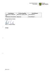 STAATSMiNISTERIUM Freistaat DESiNNERN _ SACHSEN Ausrüstung Art des Angriffes Schutzklasse Ballistischer Plattenträ- Beschuss, Schnitt, Stich Schutzklasse 4 ger Ballistischer Schutzhelm Beschuss Schutzklasse 1 Mit eundlichen Grüßen PrÄDr. Roland Wöller Anlage Seite 3 von 3