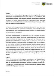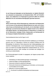 STAATSMINISTERIUM DER JUSTIZ 5 Freistaat SACHSEN Frage 1: Welche Probleme sind der Staatsregierung hinsichtlich mangelnder Zuverlässig- keit digitaler Beweismittel insbesondere (aber nicht nur) aus Smartphones, TKÜ und Funkzellen-Abfragen sowie bezüglich fehlender Standards zur Feststellung derselben im Rahmen des strafrechtlichen Erkenntnisverfahrens, besonders während der Beweisaufnahme in der strafrechtlichen Hauptverhandlung, im Be- reich der sächsischen Justiz bekannt? lm Rahmen der Ermittlungstätigkeit als auch bei den Gerichten sind bisher keine Prob- leme im Zusammenhang mit mangelnder Zuverlässigkeit elektronischer Beweismittel bekannt geworden. Auch Probleme wegen fehlender Standards zur Feststellung digita- ler Beweismittel sind nicht bekannt. Zur Klärung technischer Fragen zum Beweiswert und zu der Aussagekraft der elektro- nischen Daten besteht bei allen sächsischen Staatsanwaltschaften und bei der Gene- ralstaatsanwaltschaft die Möglichkeit der Beratung durch den Referenten für lT- Forensik. Diesen ist bekannt, dass bestimmte Daten, wie Dateisystem-Zeitstempel und Geo-Daten, besonders zu betrachten und auf Plausibilität zu prüfen sind. Die Referen- ten für lT-Forensik sind auch in der Lage zu überprüfen, ob die Herkunft der Daten in der Akte ausreichend dokumentiert sind. lm Rahmen der Hauptverhandlung besteht zudem die Möglichkeit für das Gericht, welchem im Rahmen der Beweiswürdigung auch die Bewertung der Qualität digitaler Beweismittel obliegt, insbesondere den Poli- zeibeamten oder ReferenVinnen für lT-Forensik, die die Sicherung oder Auswertung der Daten durchgeführt hat, als Zeugiinnen bzw. sachverständigen Zeuglinnen zu ver- nehmen. Frage 2: Welche Standards werden in der digitalen Forensik und in der Strafjustiz Sach- sens bei der Herstellung und Verarbeitung digitaler Beweise zu Grunde gelegt? (Bitte die Rechtsgrundlagen, technischen Standards, Leitfäden, operativen An- weisungen etc., welche entsprechende Standards und Kriterien vorgeben, für die beteiligten Berufsgruppen benennen.) Seite 2 von 9