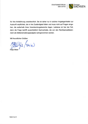 STAATSI\4INISTERIUM Freistaat DER JUSTIZ ffi SACHSEN für ihre Amtsführung verantwortlich. Sie ist daher nur in solchen Angelegenheiten zur Auskunft verpflichtet, die in ihre Zuständigkeit fallen und muss nicht auf Fragen einge- hen, die außerhalb ihres Verantwortungsbereichs liegen. Letzteres ist hier der Fall, denn die Frage betrift ausschließlich Sachverhalte, die von den Rechtsanwaltskam- mern als Selbstvenrualtungsaufgabe wahrgenommen werden. Mit freundlichen Grüßen tr a\ e-) Meier Seite 9 von I
