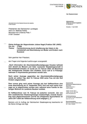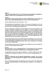 STAATSMlNISTERlUM Freistaat DES 1NNERN SACHSEN Frage 1: Kann die Staatsregierung die in der Vorbemerkung geschilderten Vorgänge be- stätigen und wenn nein, wie gestalten sie sich aus ihrer Sicht? Frage 2: Aus welchem Grund wurden Mutter und Kinder abgeschoben und der Vater am selben Tag in Abschiebehaft genommen und so von der Familie getrennt? Zusammenfassende Antwort auf die Fragen 1 und 2: Die Abschiebung der betreffenden Familie in die Russische Föderation war für den 26. September 2019 geplant. Da beim Zugriff nicht alle Familienangehörigen anwesend waren, wurde nur der Familienvater abgeschoben. Da die in Deutschland verbliebenen Familienmitglieder nicht ihrer Ausreisepflicht in die Russische Föderation nachgekommen sind, erfolgte am 14. Februar 2020 ein erneuter Zugriff zur Abschiebung. Diesmal wurden die Mutter und die fünf minderjährigen Kinder angetroffen. Dabei wurde auch der Familienvater angetroffen, der nach eigener Aussa- ge am 13. Februar 2020 aus der Russischen Föderation unerlaubt und ohne Mitführung eines gültigen internationalen Reisepasses nach Deutschland eingereist ist. Einen Asylantrag stellte er am 13. Februar 2020 nicht. Ein am Festnahmetag gestellter Asyl- folgeantrag wurde zwischenzeitlich zurückgenommen. Da der Familienvater nicht für den Rückführungstermin gemeldet war und er auch nicht im Besitz eines gültigen Reisepasses war, konnte er nicht am selben Tag wie die ande- ren Familienmitglieder abgeschoben werden. Daher wurde, wie geplant, nur die Mutter mit den Kindern abgeschoben. Der Familienvater wurde auf der Grundlage eines Haftbeschlusses des Amtsgerichts Dresden in Abschiebungshaft genommen. Frage 3: Wie lange hielt er sich in Polizeigewahrsam in Hoyerswerda auf und innerhalb welchen Zeitraums erfolgte die Vorführung vor das Amtsgericht Dresden? Der Betroffene hielt sich nach seinem Aufgriff am 14. Februar 2020 bis zum Anhö- rungstermin am Amtsgericht Dresden am 15. Februar 2020 im Polizeigewahrsam auf. Frage 4: Wurde der Asylantrag, den der Mensch beabsichtigte zu stellen, nun von wem registriert und an das Bundesamt für Migration und Flüchtlinge weitergeleitet oder nicht? Der am Festnahmetag gestellte Asylfolgeantrag wurde laut Auskunft der Ausländerbe- hörde des Landkreises Bautzen an das Bundesamt für Migration und Flüchtlinge wei— tergeleitet. Seite 2 von 3