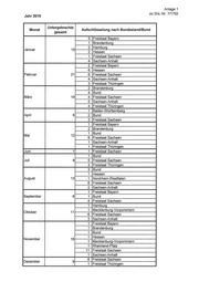 Anlage 1 zu Drs.-Nr. 7/1702 Jahr 2019 Untergebrachte Monat Aufschlüsselung nach BundeslandIBund gesamt Freistaat Bayern —\oo—\—\—\—\—\—\—-\—\<.oo>—\—\.b—\—\NO)—\—\oooo<J1—\—\AAOANAwNAAmAth-hmmN-ß—-\I\)I\>—\U1 Brandenburg Hamburg Januar 15 Hessen Freistaat Sachsen Sachsen—Anhalt Freistaat Bayern Hessen Februar 21 Freistaat Sachsen Sachsen—Anhalt Freistaat Thüringen Brandenburg Bund März 19 Freistaat Sachsen Sachsen—Anhalt Freistaat Thüringen Baden-Württem berg April Bund Freistaat Sachsen Freistaat Bayern Brandenburg Bund Mai 12 Freistaat Sachsen Sachsen—Anhalt Freistaat Thüringen Juni Freistaat Sachsen Bund Juli Freistaat Sachsen Freistaat Thüringen Bund Hessen August 13 Nordrhein-Westfalen Freistaat Sachsen Sachsen-Anhalt F reistaat Bayern September Bund Freistaat Sachsen Hamburg Mecklenburg-Vorpommern Oktober 11 Freistaat Sachsen Sachsen-Anhalt Freistaat Bayern Brandenburg Bund Hessen November 18 Mecklenburg-Vorpommern Rheinland-Pfalz _\ Freistaat Sachsen Sachsen-Anhalt Freistaat Sachsen Dezember Freistaat Thüringen