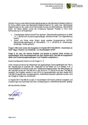 STAATSM1N1STER1UM FÜR SOZ1ALES Freistaat UND GESELLSCHAFTUCHEN SACHSEN ZUSAMMENHALT Darüber hinaus wurden Bewirtschaftungsbefugnisse an das Sächsische Staatsministerium für Kultus (SMK) sowie das Sächsische Staatsministerium für Justiz (neu: Sächsisches Staatsministerium der Justiz und für Demokratie, Europa und Gleichstellung — SMJusDEG) erteilt. Auf Basis dessen wurde die Umsetzung folgender Projekte in Form einer Kofinanzierung in 2019 gefördert: • „Transferstelle WillkommensKlTAs Sachsen" (Bewirtschaftungsbefugnis an SMK i. H. v. 58.000,00 €, Zuwendungsempfänger: Deutsche Kinder- und Jugendstiftung GmbH) • „Musik und Farbe hinter Gittern sowie soziales Gruppentraining SOTRA" (Bewirtschaftungsbefugnis an SMJusDEG i. H. v. 38.000,00 €, Zuwendungs- empfänger: Outlaw gGmbH) Frage 3: Wie hoch waren die Ausgaben im Kapitel 0810 Titel 686 54 — Zuschüsse an freie Träger, Vereine und Verbände — im Haushaltsjahr 2019? Frage 4: An wen, für welc he Proj ek te und jeweils in welc her Höhe wurden im Haushaltsjahr 2019 Haushaltsmittel aus dem Kapitel 0810 Titel 686 54 ausgezahlt? (Bitte nach Zuwendungsempfängern und Projekten aufgliedern.) Zusammenfassende Antwort auf die Fragen 3 - 4: Unter lnanspruchnahme der Möglichkeit der gegenseitigen Deckungsfähigkeit der Titel in der Hauptgruppe 6 innerhalb der Titelgruppe 54 auf Basis von § 9 Absatz 5 Nr. 3 Haushaltsgesetz 2019/2020 sowie dem Kassenanschlagsschreiben des Beauftragten für den Haushalt wurde der Titel 684 54 im Jahr 2019 mit 117.000,00 € aus dem Titel 686 54 verstärkt. Die Projekte, welche im Jahr 2019 mit Haushaltsmitteln aus dem Kapitel 0810 Titel 684 54 gemäß dem Landesprogramm „Weltoffenes Sachsen" gefördert wurden, sind der Anlage zu Frage 2 zu entnehmen. lm Kapitel 0810 Titel 686 54 wurden im Haushaltsjahr 2019 keine weiteren Ausgaben und Auszahlungen als Zuschüsse nach dem Landesprogramm „Weltoffenes Sachsen" getätigt. Mit freundlichen Grüßen iete P9ka g Anlage Seite 2 von 2