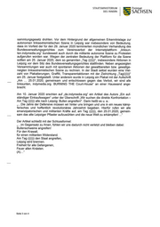 STAATSMiNiSTERiUM Freistaat DES iNNERN SACHSEN sammlungsgesetz drohten. Vor dem Hintergrund der allgemeinen Erkenntnislage zur autonomen linksextremistischen Szene in Leipzig war insbesondere von Bedeutung, dass im Vorfeld der für den 29. Januar 2020 terminierten mündlichen Verhandlung des Bundesverwaltungsgerichtes zum Vereinsverbot der lnternetplattform „linksun- ten.indymedia.org“ bundesweit auch durch die militante autonome Szene zu Protesten aufgerufen worden war. Wegen der zentralen Bedeutung der Plattform für die Szene sollten am 25. Januar 2020, dem so genannten ,,Tag (((i)))“, insbesondere Aktionen in Leipzig vor dem Sitz des BundesvenNaltungsgerichtes stattfinden. Neben angezeigten Versammlungen war auch mit spontanen Aktionen der gewaltbereiten bzw. gewaltge- neigten linksextremistischen Szene zu rechnen. In der Stadt selbst wurden eine Viel- zahl von Piakatierungen, Graffiti, Transparentaktionen mit der Zielrichtung „Tag(((i)))“ am 25. Januar festgestellt. Unter anderem wurde in Leipzig ein Plakat mit der Aufschrift „Am 25.01.2020, gemeinsam und entschlossen gegen das Verbot, wir sind alle Iinksunten, indymedia.org. BURNING THE Court-House“ an einer Hauswand ange- bracht. Am 10. Januar 2020 erschien auf „de.indymedia.org“ ein Artikel des Autors „Ein auf- ständiger Einkaufswagen“ unter der Überschrift „Wir suchen die direkte Konfrontation — Am Tag (((i))) alle nach Leipzig: Bullen angreifenl“. Darin heißt es u. a.: „...Die Jahre der Defensive müssen wir hinter uns bringen und uns in ein neues kämp- ferisches und hoffentlich revolutionäres Jahrzehnt begeben. Hierfür rufen wir alle emanzipatorischen und militanten Kräfte auf, am Tag (((i))), den 25.01.2020, gemein- sam das alte Leipziger Pflaster aufzuwühlen und die neue Welt zu erkämpfen! Der Artikel schließt mit der Schlussformel: „...im Gegensatz zu ihnen, fühlen wir uns dadurch nicht verletzt und bleiben dabei: Bullenschweine angreifen! Für den Krawall, für einen militanten Widerstand. Am Tag (((i))) den Staat angreifen, Leipzig wird brennen. Freiheit für alle Gefangenen, Feuer allen Knästen. (A)...“ Seite 3 von 4