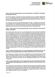 STAATSMINISTERIUM Freistaat FÜR WISSENSCHAFT SACHSEISJ KULTUR UND TOURISMUS Frage 2: Wie wird sichergestellt, dass alle Studierenden an digitalen Lehrangebo ten teilhaben können? Die Nutzung digitaler Lehrangebote hängt naturgemäß auch von privaten Gegebenhei ten ab - wie beispielsweise dem Vorhandensein eines Internetanschlusses. Auf die Ver sorgung der Haushalte mit leistungsfähigen Internetanschlüssen können die Hochschu len keinen direkten Einfluss nehmen. Es wird jedoch auch hier auf die Beantwortung unter Frage 1. verwiesen: Die Hochschu len ermöglichen eine bestmögliche Kompensation von etwaigen Nachteilen für die Stu dierenden durch z.B. kulante Handhabung von Anträgen auf Urlaubssemester oder die mögliche Nicht-Anrechnung des Sommersemesters auf die Regelstudienzeit. Frage 3: Wie werden die Hochschullehrenden auf die kommenden Herausforde rungen vorbereitet? Die Hochschullehrenden haben sich zum Großteil bereits vor der Coronavirus-Pandemie mit der Thematik „E-Learning" und „Hochschuldidaktik" auseinandergesetzt, da dies The men der Digitalisierung und nicht nur der Coronavirus-Pandemie sind. Aufgrund der Pan- demie ist die Umsetzung von E-Learning-Angeboten nunmehr schneller erforderlich ge worden als dies absehbar war. Die sächsischen Hochschulen setzen auf schon vorhan dene und bewährte Formate, haben aber auch aktuell neue Formate entwickelt. Die Ver antwortungsträger in den Hochschulen (zuständige Prorektoren, Medienzentren, Univer sitätsrechenzentren, etc.) haben die Hochschullehrenden unterstützt, indem Beratungs angebote und Webinare zur Verfügung gestellt wurden. Auch die hochschulübergreifen- den sächsischen Netzwerke wie z.B. das Hochschuldidaktische Zentrum Sachsen, der Arbeitskreis E-Learning oder die Bildungsportal Sachsen GmbH bemühten sich, stetig mehr und bessere digitale Angebote und Beratungsangebote zur Verfügung stellen zu können. Als Fazit kann gezogen werden, dass sich die Hochschullehrerenden äußerst engagiert gezeigt haben, um für den Vorlesungsstart Online-Angebote bereitstellen zu können. Frage 4: Welche Konzepte gibt es an den sächsischen Hochschulen für die Um setzung des kommenden Semesters?(Bitte aufschlüsseln nach Hochschule.) Die Frage wird so verstanden, dass es der Fragestellerin um das Sommersemester 2020 geht. Grundsätzlich werden durch die Hochschulen umfassende Informationen zur Um setzung des kommenden Semesters auf ihrer Webseite bereitgestellt und laufend aktu alisiert. Eine Auflistung der Konzepte, die der Staatsregierung bekannt sind, ist in Anlage 1 dargestellt. Frage 5: Welche Maßnahmen rät die Staatsregierung den sächsischen Hochschu len kurzfristig sowie langfristig zu ergreifen, um mit der Corona-Pandemie umzu gehen? Den Hochschulen wird empfohlen, die Lehre für das Sommersemester 2020 soweit mög lich vorrangig über Online-Formate zu realisieren und ihre digitalen Angebote noch weiter auszubauen. Sofern Kontakte zwischen Personen nicht vermieden werden können, wird den Hochschulen ausdrücklich die Einhaltung der Hygienevorschriften zur Vermeidung einer Infektion mit dem Corona-Virus auferlegt. Seite 2 von 3