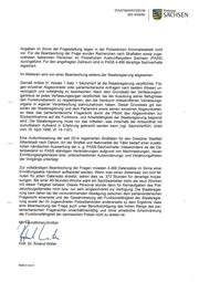 STAATSMiNiSTERiUM Freistaat DES INNERN SACH SEN Angaben im Sinne der Fragestellung liegen in der Polizeilichen Kriminalstatistik nicht vor. Für die Beantwortung der Frage wurden Recherchen nach Straftaten sowie zuge- ordneten bekannten Personen im Polizeilichen Auskunftssystem Sachsen (PASS) durchgeführt. Für den angefragten Zeitraum sind in PASS 4.468 derartige Sachverhalte registriert. Im Weiteren wird von einer Beantwortung seitens der Staatsregierung abgesehen. Gemäß Artikel 51 Absatz 1 Satz 1 SächsVerf ist die Staatsregierung verpflichtet, Fra- gen einzelner Abgeordneter oder parlamentarische Anfragen nach bestem Wissen un- verzüglich und vollständig zu beantworten. Nach dem Grundsatz der Verfassungsor- gantreue ist jedes Verfassungsorgan verpflichtet, bei der Ausübung seiner Befugnisse den Funktionsbereich zu respektieren, den die hierdurch mitbetroffenen Verfassungs— organe in eigener Verantwortung wahrzunehmen haben. Dieser Grundsatz gilt zwi- schen der Staatsregierung und dem Parlament sowie seinen einzelnen Abgeordneten, so dass das parlamentarische Fragerecht durch die Pflicht des Abgeordneten zur Rücksichtnahme auf die Funktions- und Arbeitsfähigkeit der Staatsregierung begrenzt wird. Die Staatsregierung muss nur das mitteilen, was innerhalb der Antwortfrist mit zumutbarem Aufwand in Erfahrung gebracht werden kann (vgl. SächsVerfGH, Urteil vom 16. April 1998, Vf. 14—1-97). Eine Aufschlüsselung der seit 2014 registrierten Straftaten für den Dresdner Stadtteil Albertstadt nach Datum, Art der Straftat und Nationalität der Täter bedarf einer zusätz— lichen händischen Auswertung der o. g. PASS-Sachverhaite, insbesondere da der Da- tenbestand im PASS ständigen Veränderungen aufgrund von Nachmeldungen, neuen Ermittlungsergebnissen bzw. unterschiedlichen Aussonderungs- und Verjährungsfristen der Vorgänge unterliegt. Zur vollständigen Beantwortung der Fragen müssten 4.468 Datensätze im Sinne einer Ermittlungsakte händisch aufbereitet werden. Wenn man einen Zeitansatz von fünf Mi- nuten für jeden Datensatz ansetzt, wären dies ca. 373 Stunden für derartige Anpas- sungen. Bei einer 40-Stunden-Woche wäre ein Sachbearbeiter mehr als neun Wochen mit dieser Tätigkeit befasst. Dieses Personal stünde dann für Kernaufgaben des Poli- zeivoilzugsdienstes nicht bzw. nur sehr eingeschränkt zur Verfügung. Die Staatsregie- rung kam daher bei der vorzunehmenden Abwägung zwischen dem parlamentarischen Fragerecht einerseits und der Gewährleistung der Funktionsfähigkeit der Staatsregie— rung sowie der ihr zugeordneten Polizeibehörden andererseits zu dem Ergebnis, dass eine Beantwortung der Frage auch unter Berücksichtigung des hohen Rangs des par- lamentarischen Fragerechts unverhältnismäßig und ohne erhebliche Einschränkung der Funktionsfähigkeit der sächsischen Polizei nicht zu leisten ist. Mi r ndlichemGrüßen "\ M/ (A Pr f. Dr. Roland Wölier Seite 4 von 4