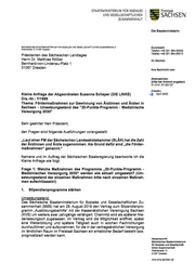 STAATSM1N1STER1UM FÜR SOZ1ALES Freistaat UND GESELLSCHAFTUCHEN SACHSEN ZUSAMMENHALT 2. Mehr Studienplätze für Humanmedizin in Sachsen Umsetzunqstand: Das Sächsische Staatsministeriurn für Wissenschaft, Kultur und Tourismus (SMWK) be- absichtigt, die bisher aus Mitteln des Hochschulpakts 2020 nur befristet finanzierten 20 zusätzlichen Studienplätze an der Medizinischen Fakultät Leipzig (MFL) sowie wei- tere 20 Studienplätze an der MFL künftig aus Mitteln des Zukunftsvertrages dauerhaft zu finanzieren. Am Standort Chemnitz werden zudem weitere 50 Studienplätze für Human- medizin im Modellstudiengang der Medizinischen Fakultät Dresden (MFD) bereitgestellt. 3. Mehr Studienplätze für Humanmedizin außerhalb Sachsens Umsetzunqstand: Das SMS hat am 28. Juni 2019 einen Vertrag mit der KVS zur Ergänzung des Pro- gramms „Studieren in Europa — Zukunft in Sachsen" abgeschlossen. Danach übernimmt das SMS für die Jahrgänge 2019 und 2020 jeweils für bis zu zehn Studierende durch Stipendien die Studiengebühren für Studienplätze im Fach Humanmedizin in Ungarn an der Universität Pécs. Voraussetzung ist, dass sich die Studierenden einzelvertraglich verpflichten, nach erfolgreichem Studium eine Weiterbildung zum Facharzt für Neurolo- gie oder Psychiatrie und Psychotherapie oder Kinder- und Jugendpsychiatrie und -psy- chotherapie oder zum Facharzt für offentliches Gesundheitswesen oder Hygiene und Umweltmedizin oder zum Facharzt für Allgemeinmedizin abzuschließen. Die Absolven- ten müssen darüber hinaus mindestens fünf Jahre nach Abschluss ihrer Weiterbildung im Freistaat Sachsen als obengenannter Facharzt tätig sein. Für den Jahrgang 2019 war die Bewerberzahl auf Grund von Absagen der Bewerber kurz vor Studienbeginn gesunken, so dass die Teilnehmer nur für das Programm der KVS ausreichten. Daher stehen für den Jahrgang 2020 nunmehr 20 zusätzliche Plätze zur Verfügung. Auf Grund umfangreicher Werbung im Dezember 2020 haben sich innerhalb der Bewer- bungsfrist (31. Januar 2020) für das Programm insgesamt 150 lnteressenten beworben. Es wurden 141 Bewerber, die die Auswahlkriterien erfüllten, zu den Auswahlgesprächen eingeladen. Diese finden im März und April 2020 via Skype statt. 4. Reformvorhaben/Konzepte der medizinischen Fakultäten der TU Dresden und Universität Leipzig zur Stärkung der Allgemeinmedizin Umsetzunqsstand: Die Medizinischen Fakultäten Dresden und Leipzig haben sich mit ihrem jeweiligen Re- formvorhaben (Modellstudiengang Chemnitz der MFD sowie „MiLaMed" der MFL) für eine Projektförderung durch das Bundesministerium für Gesundheit beworben. 5. Landarztquote Die Regierungsparteien haben sich im Koalitionsvertrag zur Einführung einer Landarzt- quote verpflichtet. Die dafür erforderliche Kabinettsvorlage befindet sich in Erarbeitung. Ziel ist die Einführung einer Landarztquote zum Wintersemester 2012/2022. Seite 2 von 10