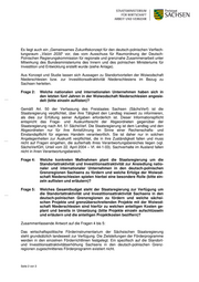 Auch das Kooperationsprogramm Interreg Polen-Sachsen ist nicht auf die Förderung der Standort- und Investitionsattraktivität Sachsens ausgerichtet. Die positiven Ergeb- nisse des Programms und der einzelnen grenzübergreifenden Projekte haben nur indirekte Auswirkungen auf die Standort- und Investitionsattraktivität. Ebenfalls erfolgt generell keine Budgetierung nach Landkreisen oder Grenzräumen. Allerdings gewährt der Freistaat Sachsen innerhalb des Programms der Gemein- schaftsaufgabe Verbesserung der regionalen Wirtschaftsstruktur (GRW) im Landkreis Görlitz regionale Investitionsbeihilfen mit einem Grenzzuschlag. Hier ist der Fördersatz 10 Prozentpunkte höher als im übrigen Gebiet Sachsens. Grundlage sind die Leitlinien für Regionalbeihilfen 2014 - 2020 der Europäischen Kommission. Durch den Grenzzuschlag verringert sich das Fördersatzgefälle zwischen der sächsischen Grenz- region und der Woiwodschaft Niederschlesien. Mit freundlichen Grüßen Martin Dulig Anlage Seite 3 von 3