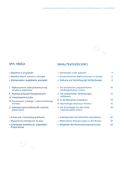 Gemeinsames Zukunftskonzept für den deutsch-polnischen Verflechtungsraum – Vision 2030 | 3 SPIS TREŚCI INHALTSVERZEICHNIS » Wspólnie w przyszłość! » Gemeinsam in die Zukunft! 4 » Wspólny obszar wzrostu w Europie » Ein gemeinsamer Wachstumsraum in Europa 6 » Wzmacnianie i pogłębienie powiązań » Stärkung und Vertiefung der Verflechtungen 8 I. Wykorzystanie zalet policentrycznej I. Die Vorteile der polyzentrischen 10 struktury osadniczej Siedlungsstruktur nutzen II. Poprawa połączeń transportowych II. Die verkehrlichen Verbindungen 12 verbessern III. Inwestowanie w ludzi III. In die Menschen investieren 14 IV. Promowanie trwałego i zrównoważonego wzrostu IV. Nachhaltiges Wachstum fördern 16 V. Zabezpieczanie podstaw dla wysokiej V. Die Grundlagen für eine hohe 18 jakości życia Lebensqualität sichern » Proces prac i konsultacje publiczne » Arbeitsprozess und öffentliche Konsultation 20 » Wyjaśnienia metodyczne do map » Methodische Erläuterungen zu den Karten 22 » Członkowie Komitetu ds. Gospodarki » Mitglieder des Raumordnungsausschusses 24 Przestrzennej