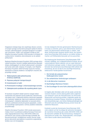 Gemeinsames Zukunftskonzept für den deutsch-polnischen Verflechtungsraum – Vision 2030 | 11 I.1 Wzmocnienie metropolii, pozostałych ośrodków I.1 Die Metropolen und Zentren als Anker miejskich i ich obszarów funkcjonalnych im Raum stärken Wzmacnianie ośrodków metropolitalnych w ich funkcji „okien Die metropolitanen Zentren werden in ihrer Funktion als „Tore na świat”, jak również rozwijanie powiązań między większymi zur Welt“ ebenso wie die Verflechtungen zwischen größeren i średnimi ośrodkami, w celu lepszego wykorzystania uzupeł- und mittleren Zentren gestärkt, um sich ergänzende Funktio- niających się funkcji. Dalsze pogłębienie współpracy miast z ich nen besser zu nutzen. Die Zusammenarbeit zwischen Städten otoczeniem w celu zapewnienia zaopatrzenia w dobra i usługi, und ihrem Umland wird weiter vertieft, um auch in Gebieten również w obszarach o zmniejszającej się liczbie ludności. mit schrumpfender Bevölkerung die Versorgung der Menschen Wspólne wykorzystanie zalet policentrycznego i różnorodne- mit Gütern und Dienstleistungen sicherzustellen. Die Standort- go obszaru gospodarczego. vorteile des polyzentralen und vielfältigen Wirtschaftsraumes werden gemeinsam genutzt und ausgeschöpft. I.2 Uwzględnianie implikacji sąsiedztwa dla rozwoju lokalnego i regionalnego I.2 Nachbarschaftseffekte bei der lokalen und Uwzględnianie sąsiedztwa i jego implikacji przy tworzeniu regionalen Entwicklung berücksichtigen strategii rozwoju lokalnego i regionalnego. Intensywniejsze Bei der Erarbeitung von Strategien für die lokale und regio- wykorzystywanie doświadczeń i potencjałów miast granicznych nale Entwicklung werden Nachbarschaftseffekte ausdrücklich i dwumiast stanowiących „laboratoria” współpracy i bramy do berücksichtigt. Die Erfahrungen und Potenziale der Grenz- wymiany polsko-niemieckiej. und Doppelstädte als „Labore“ der Zusammenarbeit und Tore für den Austausch zwischen Deutschland und Polen I.3 Włączenie obszarów wiejskich werden intensiv genutzt. Poprawianie dostępności transportowej obszarów wiejskich poprzez integrowanie ofert publicznego transportu zbiorowe- I.3 Den ländlichen Raum „mitnehmen“ go w obrębie obszarów funkcjonalnych większych ośrodków. Um die Erreichbarkeit der ländlichen Räume zu verbessern, Stabilizacja i wzmocnienie mniejszych i średnich ośrodków werden die Angebote des öffentlichen Verkehrs innerhalb w ich funkcjach wraz z otaczającymi je obszarami wiejskimi. der funktionalen Räume der größeren Zentren umfassend Transgraniczne uzgadnianie strategii adaptacji do skutków integriert. Kleinere und mittlere Zentren werden zusammen przemian demograficznych. mit den sie umgebenden ländlichen Räumen in ihren Funktio- nen stabilisiert und gestärkt. Strategien zur Anpassung an I.4 Oszczędność i efektywniejsze wykorzystanie energii die Folgen des demografischen Wandels werden grenzüber- Oszczędność i zwiększenie efektywności wykorzystania greifend aufeinander abgestimmt. energii w celu realizacji zasad trwałego i zrównoważonego rozwoju oraz sprostania wyzwaniom zmian klimatycznych. I.4 Energie sparen und effizienter nutzen Dążenie do rozwoju skoncentrowanego osadnictwa w celu Um eine langfristig nachhaltige Entwicklung zu erreichen und zapobiegania dalszej fragmentacji krajobrazu i przestrzeni oraz dem Klimawandel zu begegnen, wird Energie gespart und effi- podniesienie atrakcyjności transportu zbiorowego (kolejo- zienter genutzt. Eine konzentrierte Siedlungsentwicklung wirkt wego i autobusowego) i rowerowego. Poczynając od miast der Zersiedelung der Landschaft entgegen, und die Nutzung granicznych i dwumiast opracowywanie wspólnych koncep- von Bahn, Bus und Fahrrad wird attraktiver gestaltet. Ausge- cji energetycznych oraz wymiana doświadczeń na temat hend von den Grenz- und Doppelstädten werden gemein- dobrych praktyk. same Energiekonzepte entwickelt und Erfahrungen zu guten Lösungsansätzen ausgetauscht.