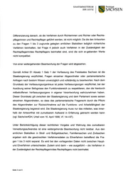 STAATSMINISTERIUi\4 DER JUSTIZ 5 Freistaat SACHSEN Differenzierung danach, ob die Verfahren durch Richterinnen und Richter oder Rechts- pflegerinnen und Rechtspfleger geführt werden, ist nicht möglich. Da die den Antworten zu den Fragen 1 bis 3 zugrunde gelegten amtlichen Statistiken lediglich richterliche Verfahren beinhalten, bei Frage 4 jedoch auch Verfahren in der Zuständigkeit der Rechtspflegerin/des Rechtpflegers beinhaltet sind, sind die sich er-gebenden Werte nicht kompatibel. Von einer weitergehenden Beantwortung der Fragen wird abgesehen Gemäß Artikel 51 Absatz 1 Satz 1 der Verfassung des Freistaates Sachsen ist die Staatsregierung verpflichtet, Fragen einzelner Abgeordneter oder parlamentarische Anfragen nach bestem Wissen unverzüglich und vollständig zu beantworten. Nach dem Grundsatz der Verfassungsorgantreue ist jedes Verfassungsorgan verpflichtet, bei der Ausübung seiner Befugnisse den Funktionsbereich zu respektieren, den die hierdurch mitbetroffenen Verfassungsorgane in eigener Verantwortung wahrzunehmen haben. Dieser Grundsatz gilt zwischen der Staatsregierung und dem Parlament sowie seinen einzelnen Abgeordneten, so dass das parlamentarische Fragerecht durch die Pflicht des Abgeordneten zur Rücksichtnahme auf die Funktions- und Arbeitsfähigkeit der Staatsregierung begrenzt wird. Die Staatsregierung muss nur das mitteilen, was inner- halb der Antwortfrist mit zumutbarem Aufirvand in Erfahrung gebracht werden kann (vgl. SächsVerfGH, Urteilvom 16. April 1998, Vt.14-l-97). Unter Berücksichtigung dieser rechtlichen Vorgabe und Wahrung des zumutbaren Venrualtungsaufwandes ist eine weitergehende Beantwortung nicht leistbar. Aus den amtlichen Statistiken in Straf- und Bußgeldsachen, Familiensachen und Zivilsachen ergeben sich die gewünschten Verfahrensdaten zu Eilverfahren betreffend die Fra- gen 1 bis 3 nicht separat. Es wird bei den vorliegenden Daten nicht zwischen Haupt- und Eilverfahren unterschieden. Zudem sind darin - wie ausgeführt - die Verfahren in der Zuständigkeit der Rechtspflegerin/des Rechtpflegers nicht beinhaltet. Seite 3 von 5