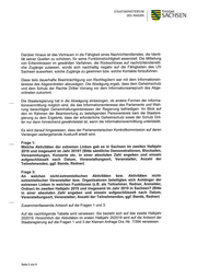 STAATSNIINISTERIUNI Freistaat DES iNNERN SACH SEN Darüber hinaus ist das Vertrauen in die Fähigkeit eines Nachrichtendienstes, die Identi- tät seiner Quellen zu schützen, für seine Funktionstüchtigkeit essenziell. Die Mitteilung von Erkenntnissen im gewählten Verfahren, die Rückschlüsse auf nachrichtendienstli- che Zugänge zulassen, würde sich nachhaltig negativ auf die Fähigkeiten des LfV Sachsen auswirken, solche Zugänge zu gewinnen bzw. solche Kontakte fortzuführen. Diese teils dauerhafte Beeinträchtigung von Rechtsgütern war mit dem Informationsin- teresse des Abgeordneten abzuwägen. Die Abwägung ergab, dass dem Geheimschutz und dem Schutz der Rechte Dritter Vorrang vor dem lnformationsanspruch des Abge- ordneten zukommt. Die Staatsregierung hat in die Abwägung einbezogen, ob andere Formen der Informa- tionsvermittlung möglich sind, die das lnformationsinteresse des Parlaments und Wah- rung berechtigter Geheimhaltungsinteressen der Regierung befriedigen. Im Blick auf den im Rahmen der Beantwortung zu beteiligenden Personenkreis kam die Staatsre- gierung zu dem Ergebnis, dass der erforderliche Geheimschutz sowie der Schutz Drit- ter nur dann hinreichend gewährleistet ist, wenn die lnformationsvermittlung unterbleibt. Es wird darauf hingewiesen, dass der Parlamentarischen Kontrollkommission auf deren Verlangen weitergehende Auskunft erteilt wird. Frage 1: Welche Aktivitäten der extremen Linken gab es in Sachsen im zweiten Halbjahr 2019 und insgesamt im Jahr 2019? (Bitte sämtliche Demonstrationen, Blockaden, Versammlungen, Konzerte etc. in einer absoluten Zahl angeben und einzeln aufgeschlüsselt nach Datum, Veranstaltungsort, Veranstalter, Anzahl der Teilnehmenden, ggf. Bands, Redner) Frage 3: An welchen nicht-extremistischen Aktivitäten bzw. Aktivitäten nicht- extremistischer Veranstalter bzw. Organisatoren beteiligten sich Anhänger der extremen Linken in welchen Funktionen (z.B. als Teilnehmer, Redner, Anmelder, Ordner) im zweiten Halbjahr 2019 und insgesamt im Jahr 2019 in Sachsen? (Bitte in einer absoluten Zahl angeben und einzeln aufgeschlüsselt nach Datum, Veranstaltungsort, Veranstalter, Anzahl der Teilnehmenden, ggf. Bands, Redner) Zusammenfassende Antwort auf die Fragen 1 und 3: Auf die nachfolgende Tabelle wird verwiesen. Sie bezieht sich auf das zweite Halbjahr 202019. Hinsichtlich der Aktivitäten im ersten Halbjahr 202019 wird auf die Antwort der Staatsregierung auf die Fragen 1 und 3 der Kleinen Anfrage Drs.-Nr. 7/394 verwiesen. Seite 2 von 9