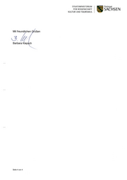 Mit freundlichen Grüßen 3 u Barbara Klepsch Seite 4 von 4 STAATSMINISTERIUM FÜR WISSENSCHAFT KULTUR UND TOURISMUS Freistaat SACHSEN