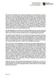 STAATSMINISTERIUM FÜR WISSENSCHAFT KULTUR UND TOURISMUS Die bereits unter Nanette Snoep begonnene Digitalisierung der Bestände der SES im Rahmen des Daphne-Projektes, die Provenienzforschung und der partnerschaftliche Austausch mit den Herkunftsgesellschaften sowie die Öffnung für breite Besuchergrup- pen wurde und wird unter der derzeitigen Direktorin Leontine Meijer-van Mensch fortge- führt und intensiviert. Beispielsweise fanden 2019 Repatriierungen menschlicher Über- reste an Australien statt (auf die Kleine Anfrage Drs. 7/952 wird verwiesen). Die auf der ersten Kultur-Ministerkonferenz beschlossenen „Ersten Eckpunkte zum Umgang mit Sammlungsgut aus kolonialen Kontexten“ und der „Leitfaden zum Umgang mit Samm- lungsgut aus kolonialen Kontexten" (2019) wurden auf die spezifischen Kontexte der SES hin analysiert und mündeten inhaltlich in der Erarbeitung der Teilprojekte für „(Re)in- venting Grassi 2023“ und in der Beantragung von Drittmitteln aus der Initiative für Ethno- logische Sammlungen der Kulturstiftung des Bundes. Die Objektdigitalisierung im Rahmen des Daphne-Projektes wurde und wird in allen drei Museen vorangebracht. Seit Juli 2019 hat die SES eine eigene Daphne-Koordinations- stelle und es wurde eine weitere spezielle Kamera zur Objektfotografie angeschafft. Des Weiteren wurden Maßnahmen zur Erhöhung der Sichtbarkeit umgesetzt. Mit einem „Outreach-Programm“ verankert sich das Völkerkundemuseum Herrnhut verstärkt in der Region der Oberlausitz und etabliert sich als wichtige Bildungs- und Kulturinstitution der Region. Der Social Media Auftritt der SES wurde ausgebaut. Auf Facebook wird zusätz- lich auch auf Englisch informiert und das Völkerkundemuseum Herrnhut hat einen eige- nen Facebook-Auftritt bekommen. Auf Ziff. 4, Drs. 6/16966 wird verwiesen. Nach Jahren ohne Sammlungstätigkeit konnten seit 2019 wichtige zeitgenössische und historische Objekte in die Sammlungen der SES integriert werden. Beispielhaft stehen hier die Ergänzungen zur Leipziger Sammlung Zentral-Afrikas mit Kunstwerken der kon- golesischen Künstler Serge Diakota, Eunice Kamanda oder Fransix Tenda, welche neue Perspektiven auf die historischen Objekte werfen und diese in einen globalen Kontext erscheinen lassen. Die Holzskulptur des kongolesischen Künstlers Hilary Balu — „Nkisi Mouse“, in Anlehnung an „Micky Mouse“, stellt einen herausragenden Erwerb dar, da damit die historische Minkisi-Sammlung dynamisiert wird. Zudem konnten Objekte die in Verbindung zur Repatriierung nach Australien stehen in die Leipziger Sammlung aufge- nommen werden. Die Dresdner Äthiopien-Sammlung konnte durch historische Doku- mente und Objekte ergänzt werden, wie beispielsweise einem historischen Fotoalbum Arthur Schuberts von 1908 — 1910 sowie seinen Tagebüchern oder einem Liturgie- und Gebetsbuch aus dem 19. Jh. zusammen mit Sistrum, Halsketten, einem Armband oder beschnitzten Elfenbeinutensilien. Insgesamt wurden in 2019 zahlreiche Einzelmaßnahmen realisiert, die u. a. den Aus- tausch zwischen den drei Museen der SES, die Realisierung von Barrierefreiheit und die Zusammenarbeit mit den Herkunftsgesellschaften, lokalen Initiativen und der Stadtge- sellschaft voranbrachten. Seite 3 von 5 Freistaat SACHSEN
