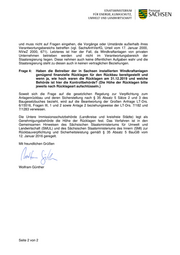 Der Staatsminister SÄCHSISCHES STAATSMINISTERIUM FÜR ENERGIE, KLIMASCHUTZ, UMWELT UND LANDWIRTSCHAFT 01076 Dresden Präsidenten des Sächsischen Landtages Durchwahl Herrn Dr. Matthias Rößler Telefon: +49 351 564-20000 Bernhard-von-Lindenau-Platz 1 Telefax: +49 351 564-20007 01067 Dresden poststelle@ smul.sachsen.de Ihr Zeichen Ihre Nachricht vom Kleine Anfrage des Abgeordneten Mario Beger (AfD) 24. Februar 2020 Drs.-Nr.: 7/1768 Aktenzeichen Thema: Windkraftanlagen in Sachsen (bitte bei Antwort angeben) Z-1050/5/179 Sehr geehrter Herr Präsident, Dresden, 23. März 2020 namens und im Auftrag der Sächsischen Staatsregierung beantworte ich die Kleine Anfrage wie folgt: Frage 1: Laut Bundesverband Windenergie/Landesverband Sachsen (gleichzeitig Quelle), erreicht der Freistaat Sachsen eine installierte Leistung von 1.199 MW bei 891 Windkraftanlagen. Wie viel Strom in KW ist im Jahr 2019 tatsächlich in das Netz eingespeist worden? Der Staatsregierung liegen noch keine Angaben für das Jahr 2019 im Sinne der Fragestellung vor. Frage 2: Wer kontrolliert in Sachsen den Rückbau von Hausanschrift: unwirtschaftlich gewordenen Windkraftanlagen? Sächsisches Staatsministerium für Energie, Klimaschutz, Umwelt und Landwirtschaft Frage 3: In welchem Zeitraum müssen stillgelegte Windkraftanlagen Wilhelm-Buck-Str.2 01097 Dresden demontiert werden? www.sachsen.de Zusammenfassende Antwort auf die Fragen 2 und 3: Verkehrsverbindung: Zu erreichen mit den Straßenbahnlinien 3, 6, 7, 8, 9, 13 Von einer Beantwortung der Fragen wird abgesehen. *D2020/26695* Besucherparkplätze: Gemäß Artikel 50 der Verfassung des Freistaates Sachsen (SächsVerf) ist Bitte beim Empfang Wilhelm- die Staatsregierung verpflichtet, über ihre Tätigkeit den Landtag insoweit zu Buck-Str. 2 melden. informieren, als dies zur Erfüllung seiner Aufgaben erforderlich ist. Dieser Bitte beachten Sie die Informationspflicht entspricht das Frage- und Auskunftsrecht der allgemeinen Hinweise zur 2020/26695 Verarbeitung personenbezogener Abgeordneten gegenüber der Staatsregierung nach Artikel 51 SächsVerf. Daten durch das Sächsische Die Staatsregierung ist dem Landtag und den Abgeordneten nur für ihre Staatsministerium für Energie, Klimaschutz, Umwelt und Amtsführung im Sinne einer Rechenschafts- und Einstandspflicht für Landwirtschaft zur Erfüllung der eigenes Handeln verantwortlich. Sie ist daher nur in solchen Informationspflichten nach der Europäischen Datenschutz- Angelegenheiten zur Auskunft verpflichtet, die in ihre Zuständigkeit fallen Grundverordnung auf www.smul.sachsen.de Seite 1 von 2