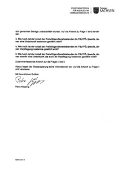 STAATSM1N1STER1UM Preistaat FJR SOZ1ALES UND SACHSEN VERBRAUCHERSCHUTZ Die St aat smInist er in SÄCHSISCHES STAATSMINISTERIUM FÜR SOZIALES UND GESELLSCAHFTLICHEN ZUSAMMENHALT Durchwahl Albedslreße 10 I 01097 Dresden Telefon +49 351 564-55001 Telefax +49 351 564-55010 Präsidenten des Sächsischen Landtages Herrn Dr. Matthias Rößler lhr Zelchen Bernhard-von-Lindenau-Platz 1 01067 Dresden Ihre Nachricht vom Aktenzelchen (bltte bel Antwort angeben) 41-0141.51-19/815 Dresden, Kleine Anfrage der Abgeordneten Doreen Schwietzer (AfD) 23. Januar 2020 Drs.-Nr.: 7/815 Thema: Taschengeldzahlung in Freiwilligendiensten Sehr geehrter Herr Präsident, namens und im Auftrag der Sächsischen Staatsregierung beantworte ich die Kleine Anfrage wie folgt: Frage 1: Wie hoch ist, nach Kenntnis der Staatsregierung, das in den Freiwilligendiensten tatsächlich gezahlte Taschengeld pro Monat im Durchschnitt? (Bitte aufschlüsseln nach einem FSJ, elnem FÖJ oder FdaG). Der Staatsregierung liegen keine entsprechenden Erkenntnisse vor. Die Staatsregierung ist dem Landtag nur für ihre Amtsführung verantwortlich. Sie ist daher nur in solchen Angelegenheiten zur Auskunft verpflichtet, die in ihre Zuständigkeit fallen und muss nicht auf Fragen eingehen, die außerhalb ihres Verantwortungsbereichs liegen. Letzteres ist hier der Fall. Die Durchführung der Freiwilligendienste ist in der Verwaltungsvorschrift des Staatsministeriums für Soziales und Verbraucherschutz zur Durchführung von Freiwilligendiensten im Freistaat Sachsen (VwV-FwD) vom 31. März 2014 ge- regelt. Nach I. Nr. 5.1 tragen die Träger die Gesamtverantwortung der Durch- führung, einschließlich der Verantwortung für die Finanzierung der Freiwilli- genprojekte. Die Träger sind nicht angehalten, der Staatsregierung die aktu- ellen Taschengeldbeträge mitzuteilen. Frage 2: Wie hoch ist der Ante 11 der Freiwilligendienstleistenden jewells im FSJ, FÖJ und FdaG, die nach Kenntnis der Staatsregierung, den nach der VwV-FwD geltenden Mindesttaschengeldbetrag bzw. Barbetrag er- halten? Mindestbeträge für Taschengelder sind in der VwV-FwD II. Nr. 1.5, Nr. 2.5 Hausanschdft: sowie der Barbetrag im Freiwilligendienst aller Generationen (FdaG) in Nr. 3.5 Slichsisches Staatsmirdstedum für Soalales und Gesedschaftll- geregelt. Der Staatsregierung liegen keine entsprechenden Informationen vor. chen Zusammenhalt Sie hat insbesondere auch keine Hinweise oder Informationen, wonach die Albenstraße 10 01097 Dresden www.sms.sachsen.de