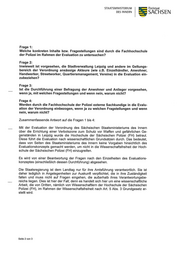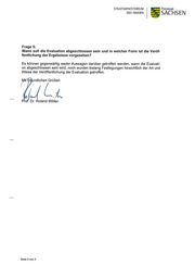STAATSMINBTERIUNI Freistaat DES INNERN SACH SEN Frage 5: Wann soll die Evaluation abgeschlossen sein und in welcher Form ist die Veröf- fentlichung der Ergebnisse vorgesehen? Es können gegenwärtig weder Aussagen darüber getroffen werden, wann die Evaluati- on abgeschlossen sein wird, noch wurden bislang Festlegungen hinsichtlich der Art und Weise der Veröffentlichung der Evaluation getroffen. ndlichen Grüßen „ ( C L Pro. Dr. Roland Wöller Seite 3 von 3