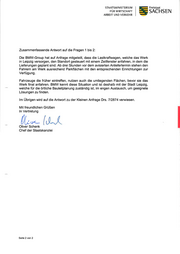 t5 STAATSMINISTERIUM Freistaat FÜR WIRTSCHAFT SACHSEN ARBEIT UND VERKEHR Der Staatsminister Sächsisches Staatsminister¡um für Wirtschaft, Arbeit und Verkehr Durchwahl Postfach 10 03 29 | 01073 Dresden Telefon: 0351 564-80001 Telefax: 0351 564-80080 Aktenze¡chen Präsidenten des Sächsischen Landtages (bitte bei Antwort angeben) Herrn Dr. Matthias Rößler LS-1 053/89/65-2020 I 3581 2 Bernhard-von-Lindena u-Platz 1 Dresden,?tJuli 2020 01067 Dresden Kleine Anfrage des Abgeordneten Holger Hentschel (AfD) Drs.-Nr.: 712873 Thema: LKW-Stellplätze im Umfeld des Leipziger BMW Werkes Sehr geehrter Herr Präsident, den Fragen sind folgende Ausführungen vorangestellt: ,,Die lndustriegebiete im Leipziger Norden werden an jedem Tag von hunderten schweren LKW angefahren. lm Gebiet rund um das nördli- che Güterverkehrszentrum steht ein Autohof mit ca. 100 LKW- Stellplätzen zur Verfügung. Dem gegenüber gibt es im Gebiet rund um die Leipziger Messe kaum Stellplätze, wo schwere LKW längere Pausen verbringen können. Dies ist insbesondere für Anlieferer des BMW-Werkes ein Problem, da dort nur 3 Stunden vor Entladung ge- parkt werden kann. Auf Grund der nicht vorhandenen Parkmöglich- 'ìt' 2e.tifìl¿t se{ 2006 å0d¡t berufundf ¡nìilie keiten ist vermehrt der Umstand zu verzeichnen, das LKW in den um- liegenden Ortschaften oftmals am Straßenrand abgeparkt werden. Diese Situation ist sowohl für die Trucker als auch für die Anrainer unbefriedigend. Hausanschr¡ft Sächsisches Staatsm¡nisterium für Wirtschaft, Arbeit und Ver- 2015 wurde vom Land Sachsen eine größere umzäunte Freifläche an kehr Wilhelm-Buck-Straße 2 der Straße ,,Am alten Flughafen" erschlossen, um dort Unterkünfte 01097 Dresden für Asylbewerber zu bauen. Das Areal liegt brach. " Außenstelle Namens und im Auftrag der Sächsischen Staatsregierung beantworte ich die Ammonskaße 10 01069 Dresden Kleine Anfrage wie folgt: Frage 1: lst der Staatsregierung das Problem bezüglich des nur unzu- reichend vorhandenen Parkraums im Umfeld des BWW- www.smwa.sachsen.de Werkes für Leipzig bekannt? Verkehrsanb¡ndung: Zu ere¡chen m¡t den Straßenbahnl¡nien Frage 2: Sieht die Staatsregierung die Möglichkeit auf dem erschlosse- 3, 7, 8, 9 - Haltestelle Carolaplatz nen Grundstück an der Straße ,,Am alten Flughafen" über- 'lnformation zum Zugâng für vêr- gangsweise Parkraum für LKWzu ermöglichen und ggf. mit der schlüsselte elektron¡sche Dokumente Stadt Leipzig in Kontakt zu treten? unter w.smwa.sachsen.de/kon- takt.htm @ poststellê@smwa-sachsen. Seite 1 von 2 de-ma¡l.de