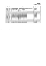 Anlage 2 zu Drs.-Nr. 7/1819 Tatzeit Straftat Gemeinde 12.10.2019 Gemeinschädliche Sachbeschädigung gem. § 304 StGB Coswig 01.11.2019 Sachbeschädigung gem. § 303 StGB Meißen 11.11.2019 Straftat nach dem Betäubungsmittelgesetz Coswig 03.12.2019 Straftat nach dem Betäubungsmittelgesetz Coswig 03.12.2019 Straftat nach dem Betäubungsmittelgesetz Coswig 03.12.2019 Straftat nach dem Betäubungsmittelgesetz Coswig 03.12.2019 Straftat nach dem Betäubungsmittelgesetz Coswig 03.12.2019 Straftat nach dem Betäubungsmittelgesetz Coswig 03.12.2019 Straftat nach dem Betäubungsmittelgesetz Coswig 03.12.2019 Straftat nach dem Betäubungsmittelgesetz Coswig 03.12.2019 Straftat nach dem Betäubungsmittelgesetz Coswig 03.12.2019 Straftat nach dem Betäubungsmittelgesetz Coswig 10.12.2019 Straftat nach dem Betäubungsmittelgesetz Coswig Seite 2 von 2