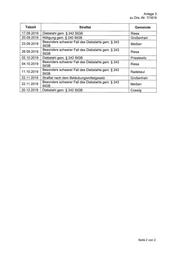 Anlage 4 zu Drs.-Nr. 7/1819 Tatzeit Straftat Gemeinde 16.09.2019 gfesgnders schwerer Fall des Diebstahls gem. § 243 Großenhain 30.09.2019 Straftat nach dem Betäubungsmittelgesetz Meißen Seite 2 von 2