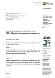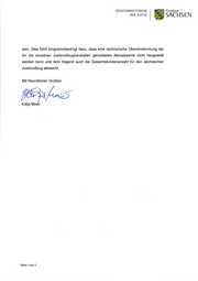STAATSMINISTERIUM I !E Freistaat DER rusrz I g9 SACHSEN sein. Dies führt programmbedingt dazu, dass eine rechnerische Übereinstimmung der für die einzelnen Justizvollzugsanstalten gemeldeten Monatswerte nicht hergestellt werden kann und dem folgend auch die Gesamtstundenanzahl für den sächsischen Justizvollzug abweicht. Mit freundlichen Grüßen c Katja r Seite 3 von 3