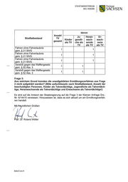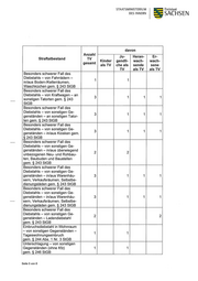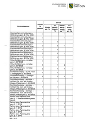 STAATSMINISTERWM Freistaat DES INNERN SACHSEN davon Anzahl Ju- Heran- Er- Straftatbestand TV Kinder gendli- wach- wach- gesamt als TV che als sende sene TV als TV als TV Erschleichen von Leistungen — Beförderung gem. § 265a StGB Erschleichen von Leistungen — — Beförderung gem. § 265a StGB Erschleichen von Leistungen — Beförderung gem. § 265a StGB Erschleichen von Leistungen — Beförderung gem. § 265a StGB Erschleichen von Leistungen -— Beförderung gem. § 265a StGB Erschleichen von Leistungen — Beförderung gem. § 265a StGB Erschleichen von Leistungen — Beförderung gem. § 265a StGB Urkundenfälschung — sonstige gem. § 267 StGB Urkundenfälschung — sonstige gem. § 267 StGB Urkundenfälschung — sonstige gem. § 267 StGB Sachbeschädigung — durch Feuer — sonstige gem. § 303 StGB Sachbeschädigung — sonstige — an Kfz gem. § 303 StGB Sachbeschädigung — sonstige — nicht an Kfz, nicht auf Straßen, Wegen, Plätzen gem. § 303 StGB Sachbeschädigung — sonstige — nicht an Kfz, nicht auf Straßen, Wegen, Plätzen gem. § 303 StGB Sachbeschädigung — sonstige — nicht an Kfz, nicht auf Straßen, Wegen, Plätzen gem. § 303 StGB Fahren ohne Fahrerlaubnis gem. § 21 Straßenverkehrsgesetz (StVG) Fahren ohne Fahrerlaubnis gem. § 21 StVG Fahren ohne Fahrerlaubnis gem. §21 StVG Fahren ohne Fahrerlaubnis gem. § 21 StVG Fahren ohne Fahrerlaubnis gem. § 21 StVG Seite 7 von 8