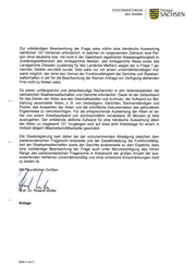 STAATSMINISTERIUM Freistaat DES INNERN SACH SEN Frage 2: Wie hoch war für diesen Zeitraum und diese Delikte jeweils der Anteil von Zu- wanderern an den Tatverdächtigen im Landkreis Meißen? (Zuwanderer im Sinne der „Polizeilichen Kriminalstatistik des Landes Sachsen" [„PKS“]‚ also „Asylbe- werber“, „Internationailnational Schutzberechtigte und Asylberechtigte“, „gedul- dete Ausländer“ [auch mit abgelaufener Duldung], „Kontingentflüchtlinge“ sowie „unerlaubt aufhältige Personen“) Frage 3: Wie hoch war für diesen Zeitraum und diese Delikte jeweils der Anteil von Zu- wanderern an den Beschuldigten im Landkreis Meißen? (Zuwanderer im in Punkt 2 spezifizierten Sinne) Zusammenfassende Antwort auf die Fragen 1 bis 3: Es wird auf die Anlage verwiesen. Frage 4: Wie hoch war für diesen Zeitraum und diese Delikte jeweils der Anteil von Zu- wanderern an den Verurteilten im Landkreis Meißen? (Zuwanderer im in Punkt 2 spezifizierten Sinne) Von einer Beantwortung wird abgesehen. Die zur Beantwortung der Frage notwendigen Erkenntnisse liegen der Staatsregierung nicht unmittelbar vor. Sie müssten aufwendig recherchiert werden. Gemäß Artikel 51 Absatz 1 Satz 1 der Verfassung des Freistaates Sachsen ist die Staatsregierung verpflichtet, Fragen einzelner Abgeordneter oder parlamentarische Anfragen nach bestem Wissen unverzüglich und vollständig zu beantworten. Nach dem Grundsatz der Verfassungsorgantreue ist jedes Verfassungsorgan verpflichtet, bei der Ausübung seiner Befugnisse den Funktionsbereich zu respektieren, den die hierdurch mitbetroffenen Verfassungsorgane in eigener Verantwortung wahrzunehmen haben. Dieser Grundsatz gilt zwischen der Staatsregierung und dem Parlament sowie seinen einzelnen Abgeordneten, so dass das parlamentarische Fragerecht durch die Pflicht des Abgeordneten zur Rücksichtnahme auf die Funktions- und Arbeitsfähigkeit der Staatsregierung begrenzt ist. Die Staatsregierung muss nur das mitteilen, was inner- halb der Antwortfrist mit zumutbarem Aufwand in Erfahrung gebracht werden kann. Die für eine vollständige Antwort notwendigen Angaben werden von den Staatsanwalt- schaften und Gerichten weder abschließend statistisch erfasst noch in den Datenban— ken gesondert ausgewiesen. So werden von der forumSTAR—Datenbank für den Be- reich des Strafrechts in der ordentlichen Gerichtsbarkeit des Freistaates Sachsen zwar die Anzahl der Verurteilten ohne deutsche Staatsangehörigkeit erfasst. Allerdings han- delt es sich bei den Angaben zur Staatsangehörigkeit nicht um eine Pflichteintragung, so dass eine Auswertung nur begrenzte Aussagekraft besäße. Darüber hinaus wird keine Unterscheidung nach „Zuwanderern“ im Sinne der Frage 2 vorgenommen. Seite 2 von 3