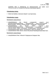 Anlage zu Drs.-Nr. 7/1035 Leutewitzer Ring in Verlängerung zur Höhenpromenade und südlich durch Höhenpromenade und Parkplatz des Elbamare-Erlebnisbades begrenzt. Polizeidirektion Görlitz: Gebiet des Stadtteils „Historische Altstadt" in der Stadt Görlitz. Polizeidirektion Leipzig Revierbereich Leipziq-Zentrum Leipzig/Stadtbezirk Ost, Bereich „Ludwigstraße“, umgrenzt durch Eisenbahnstraße/Elisabethstraße — Eisenbahnstraße — Rosa—Luxemburg-Straße — Mariannenstraße — Hermann-Liebmann-Straße — Ludwigstraße — Elisabethstraße, Leipzig/Stadtbezirk Ost, Bereich „Rabet”, umgrenzt durch Eisenbahnstraße/EIisabethstraße — Elisabethstraße — Konradstraße — Hermann— Liebmann-Straße — Rabet — Lorenzstraße — Konstantinstraße — Eisenbahnstreße, Leipzig/Stadtbezirk Mitte, Bereich „Schwanenteich“ neben der Leipziger Oper, Leipzig/Stadtbezirk Mitte, Bereich „Kleiner-Willy—Brandt—PIatz/Bürgermeister-Müller—Park". Revierbereich Leipziq-Südwest Leipzig/Stadtbezirk West, Teilbereich Fußgängerzone Stuttgarter Allee. Seite 3 von 3