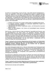 STAATSMlNlSTERlUM FÜR KULTUS lj SACHsEN Für Kinder im Grundschulalter ist nach § 24 Abs . 4 des Achten Buches Sozialgesetzbuch - Kinder- und Jugendhilfe - (SGB VIII) ein bedarfsgerechtes Angebot in Tageseinrichtungen vorzuhalten . Hierbei ist nicht von Belang, ob die Kinder eine Schule in öffentlicher oder freier Trägerschaft besuchen. Es gibt keine Verpflichtung, dass Horte - als Einrichtungen der Kinder- und Jugendhilfe - im Gebäude oder auf dem Gelände von Schulen einzurichten sind. Es gelten die Anforderungen, die das SGB VIII in den§§ 79 ff. SGB VIII an die leistungsverantwortlichen Träger der öffentlichen Jugendhilfe stellt. So ist nach § 80 Abs. 2 SGB VIII bei der Planung zu beachten, dass insbesondere 1. Kontakte in der Familie und im sozialen Umfeld erhalten und gepflegt werden können, 2. ein möglichst wirksames, vielfältiges und aufeinander abgestimmtes Angebot von Jugendhilfeleistungen gewährleistet ist, 3. junge Menschen und Familien in gefährdeten Lebens- und Wohnbereichen besonders gefördert werden, 4. Mütter und Väter Aufgaben in der Familie und Erwerbstätigkeit besser miteinander vereinbaren können . Nach§ 80 Abs. 4 SGB VIII sollen die Träger der öffentlichen Jugendhilfe darauf hinwirken, dass die Jugendhilfeplanung und andere örtliche und überörtliche Planungen aufeinander abgestimmt werden und die Planungen insgesamt den Bedürfnissen und Interessen der jungen Menschen und ihrer Familien Rechnung tragen . § 81 SGB VIII verpflichtet die Träger der öffentlichen Jugendhilfe, mit anderen Stellen und öffentlichen Einrichtungen, deren Tätigkeit sich auf die Lebenssituation junger Menschen und ihrer Familie auswirkt, im Rahmen ihrer Aufgaben und Befugnisse zusammenzuarbeiten. Hier sind unter Nummer 3 insbesondere auch die Schulen und Stellen der Schulverwaltung genannt. Frage 3: Inwieweit und mit welcher Begründung wird die Vergabe von Fördermitteln für die Sanierung, Erweiterung (ggf. auch mit Sportstätten) oder den Rückbau von staatlichen Schulen abhängig gemacht von der Existenz oder der geplanten Gründung von Schulen in freier Trägerschaft? Eine direkte Abhängigkeit besteht nicht. Im Falle der Notwendigkeit einer Projektauswahl geht dieser jedoch die Ausübung pflichtgemäßen Ermessens durch die Bewilligungsstelle und das Sächsische Staatsministerium für Kultus voraus. Bei den Auswahlkriterien werden neben einer angemessenen Verteilung zwischen den Landkreisen u. a. auch die Vollständigkeit der Unterlagen, die Wartezeiten der Antragssteller sowie gegebenenfalls schulnetzplanerische Überlegungen berücksichtigt. Baumaßnahmen an öffentlichen Schulen werden nur gefördert, wenn diese für den Zeitraum der festzulegenden Zweckbindungsfrist standortsicher sind. Bei einem nur begrenzten regionalen Schüleraufkommen kann die Existenz oder die geplante Gründung einer Schule in freier Trägerschaft die Zahl der sich für die kommunale Schule entscheidenden Eltern und Schüler verringern und damit deren Standortsicherheit gefährden. Frage 4: Inwieweit und mit welcher Begründung sind Kommunen dazu verpflichtet, das Entstehen von Schulen in freier Trägerschaft zu gewährleistet? Die Kommunen sind dazu nicht verpflichtet. Seite 2 von 3