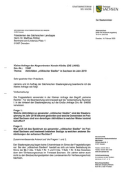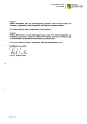 STAATSMINISTERIUNI Freistaat DES INNERN SACHSEN Der Staatsminister SÄCHSISCHES STAATSMINISTERIUM DES INNERN Aktenzeichen 01095 Dresden (bitte bei Antwort angeben) 16-0141.50l3755 Präsidenten des Sächsischen Landtages Herrn Dr. Matthias Rößler Dresden, 14. Februar 2020 Bernhard-von-Lindenau-Platz 1 01067 Dresden Kleine Anfrage der Abgeordneten Kerstin Köditz (DIE LINKE) Drs.-Nr.: 7/987 Thema: Aktivitäten „völkischer Siedler“ in Sachsen im Jahr 2019 Sehr geehrter Herr Präsident, namens und im Auftrag der Sächsischen Staatsregierung beantworte ich die Kleine Anfrage wie folgt: Vorbemerkung: Die Fragestellerin verwendet in der Kleinen Anfrage den Begriff „extreme Rechte". Für die Beantwortung wird insoweit auf die Vorbemerkung Nummer |. in der Antwort der Staatsregierung auf die Große Anfrage Drs.—Nr. 5/4956 verwiesen. Frage 1: Welche Aktivitäten so genannter „völkischer Siedler“ sind der Staatsre- gierung im Jahr 2019 bekannt geworden und welche Gemeinden im Frei- staat Sachsen sind von derartigen Aktivitäten in welcher Weise konkret betroffen? Frage 2: Wie groß ist das Spektrum so genannter „völkischer Siedler“ im Frei- staat Sachsen und inwieweit bestehen Bezüge zu welchen anderen Be- strebungen der extremen Rechten? Hausanschrift: Sächsisches Staatsministerium Zusammenfassende Antwort auf die Fragen 1 und 2: des Innern \Mihelm-Buck-Str. 2 01097 Dresden Der Staatsregierung liegen keine Erkenntnisse im Sinne der Fragestellungen vor. Bei den „völkischen Siedlern“ handelt es sich um keine Bestrebung im Telefon +49 351 564-0 Sinne der §§ 2 Abs. 1 Satz 1 Nr. 1 und 3 Abs. 1 Satz 1 Nr. 3 des Gesetzes Telefax +49 351 564-3199 www.smi.sachsen.de über den Verfassungsschutz im Freistaat Sachsen. Sie zählen daher auch nicht zu den Beobachtungsobjekten des Landesamtes für Verfassungsschutz Verkehrsanbindung: Zu erreichen mit den Straßen— Sachsen. bahnlinien 3, 6. 7, 8, 13 Besucherparkpiätze: Bitte beim Empfang Wilhelm- Buck—Str. 2 oder 4 melden.